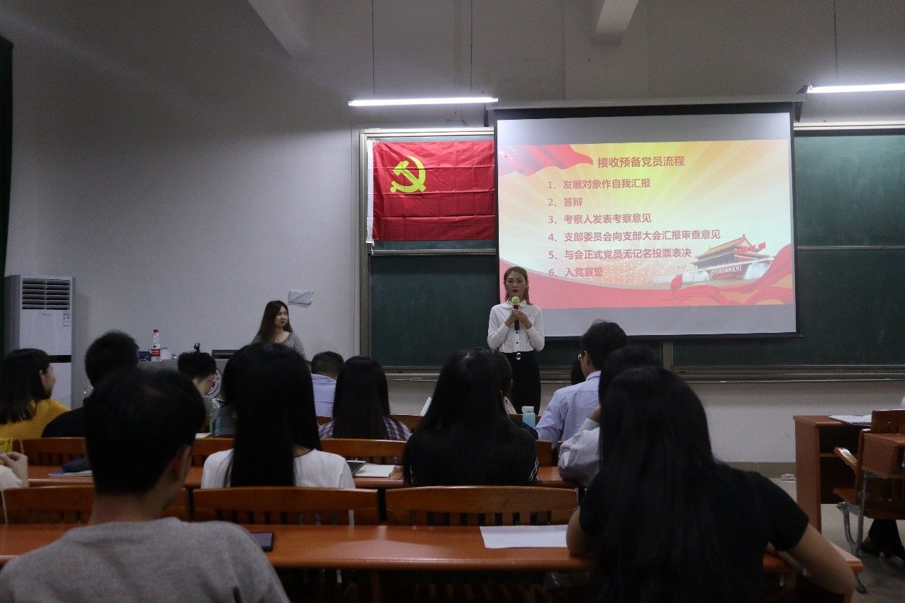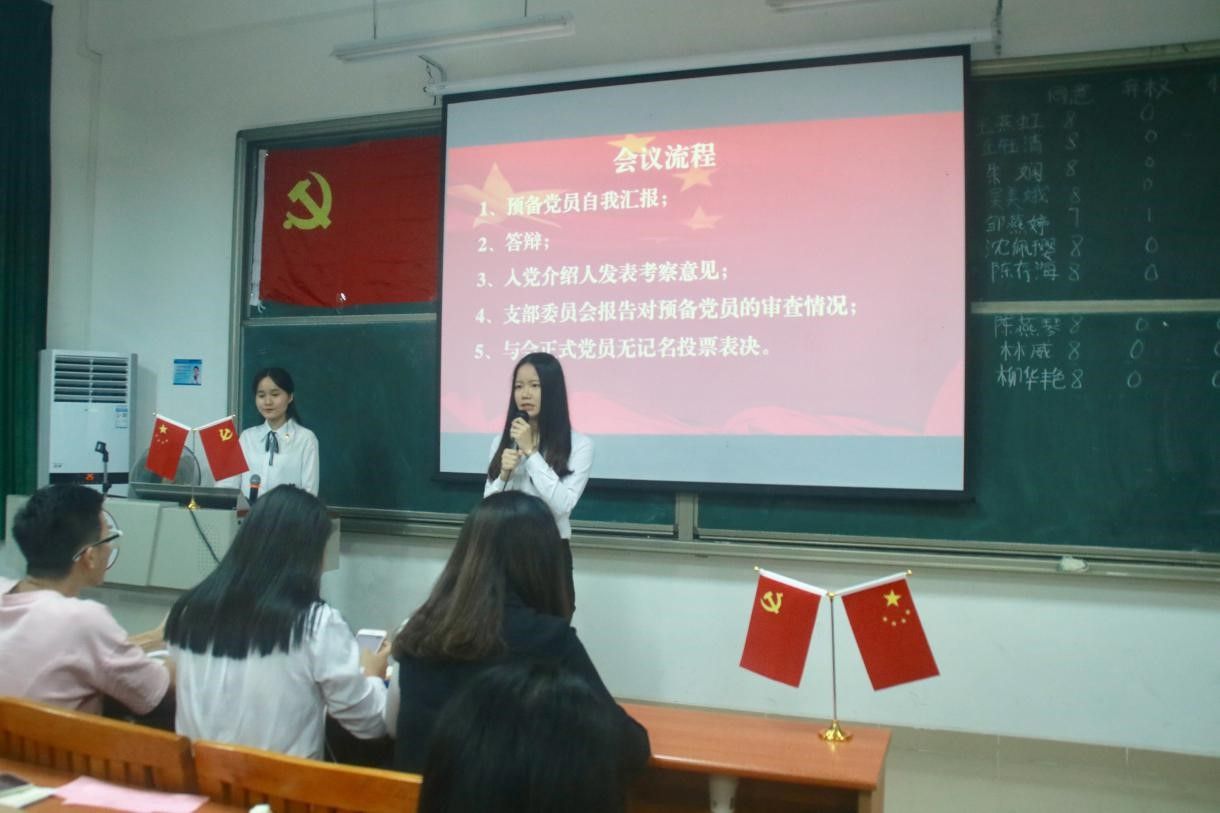 发展对象就自己成为发展期间以来对入党动机的深刻认识、学习中的成果以及工作中的表现做出总结性的汇报,并向党组织表明自己的入党决心。之后与会党员踊跃发表意见并且完成了激烈的问答环节,经入党介绍人发言、支部委员汇报考察意见以及正式党员不记名投票,同意接收考察通过的发展对象为预备党员。