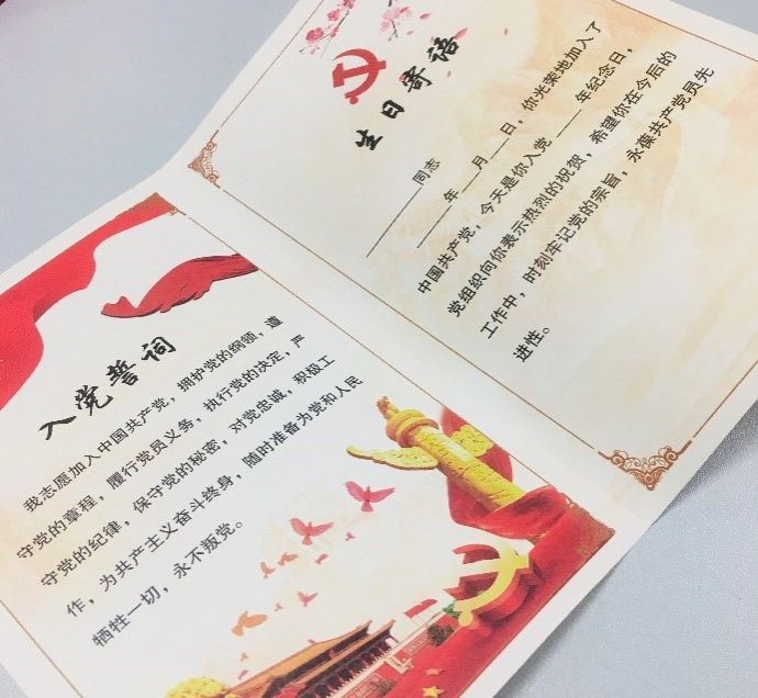 会上支部书记梁越同志和支部副书记刘硕同志亲手为会议上转正的党员递上《政治生日贺卡》,伴随着情真意切的生日感言、语重心长的寄语、铿锵有力的誓言。此次活动不仅仅体现了支部的温暖所在之处,提高了支部凝聚力;也给大家上了一堂直抵人心的“情境党课”。