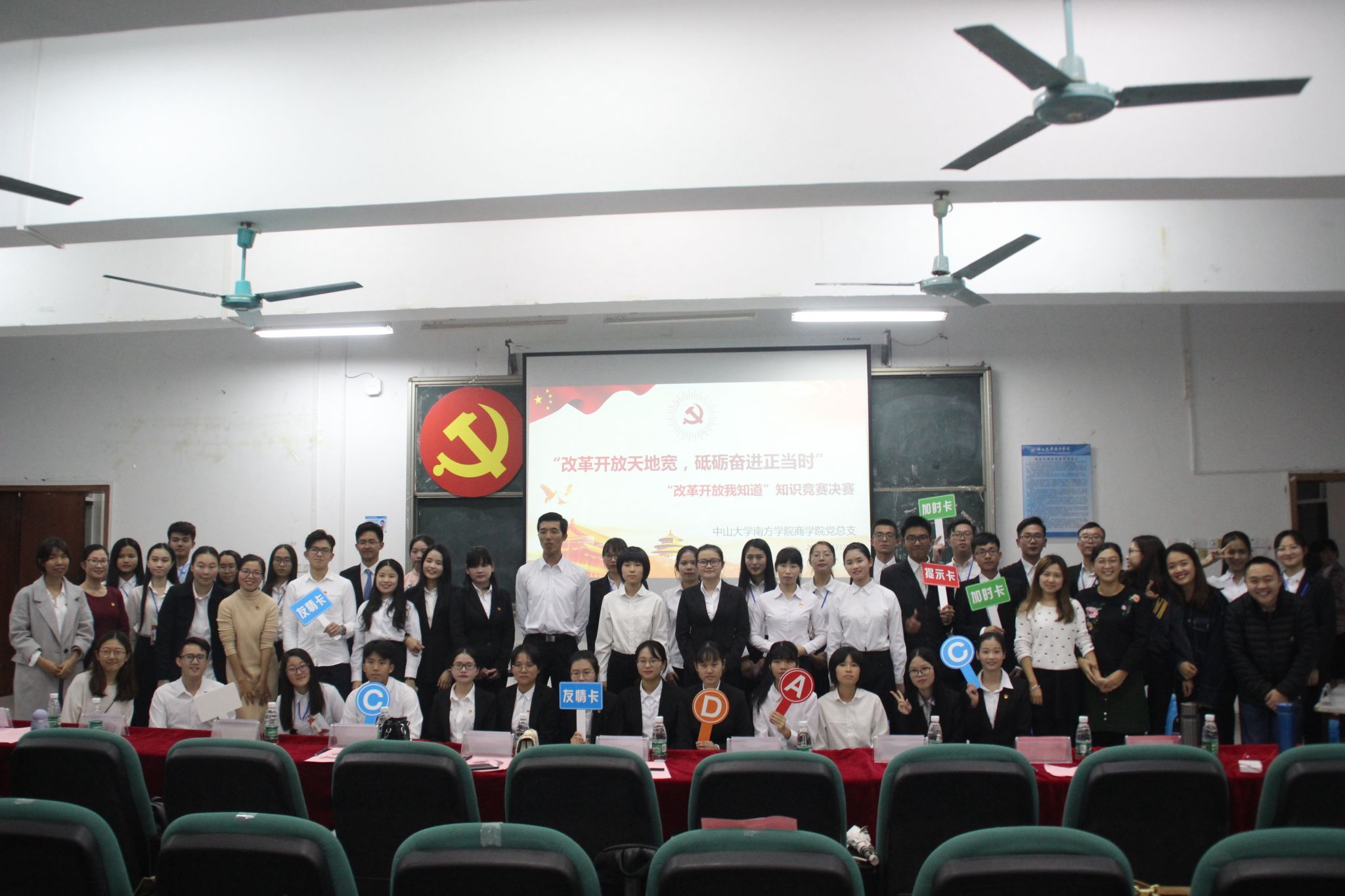 “改革开放我知道”知识竞赛决赛于11月23日18时30分在5教105拉开序幕。参加本次比赛的有中山大学南方学院党委副书记、副校长唐燕老师,中山大学南方学院学院办公室副主任黄昊老师,williamhill中文党总支各党支部书记、副书记以及williamhill中文全体辅导员老师。