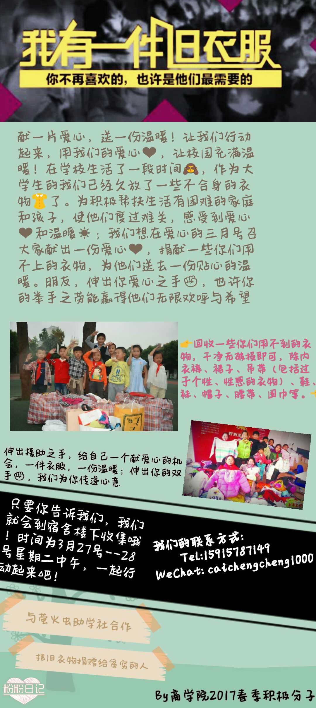 3月28号中午13:30,williamhill中文2017春季积极分子实践活动圆满结束,本次活动所收集来的旧衣物高达850多件,成果显著,所有旧衣物全部由中山大学南方学院萤火虫助学社联系广州日行一善机构负责派送到最有需要的人手上。一百六十多名积极分子在本次活动中都得到了极有意义的感悟和体会。