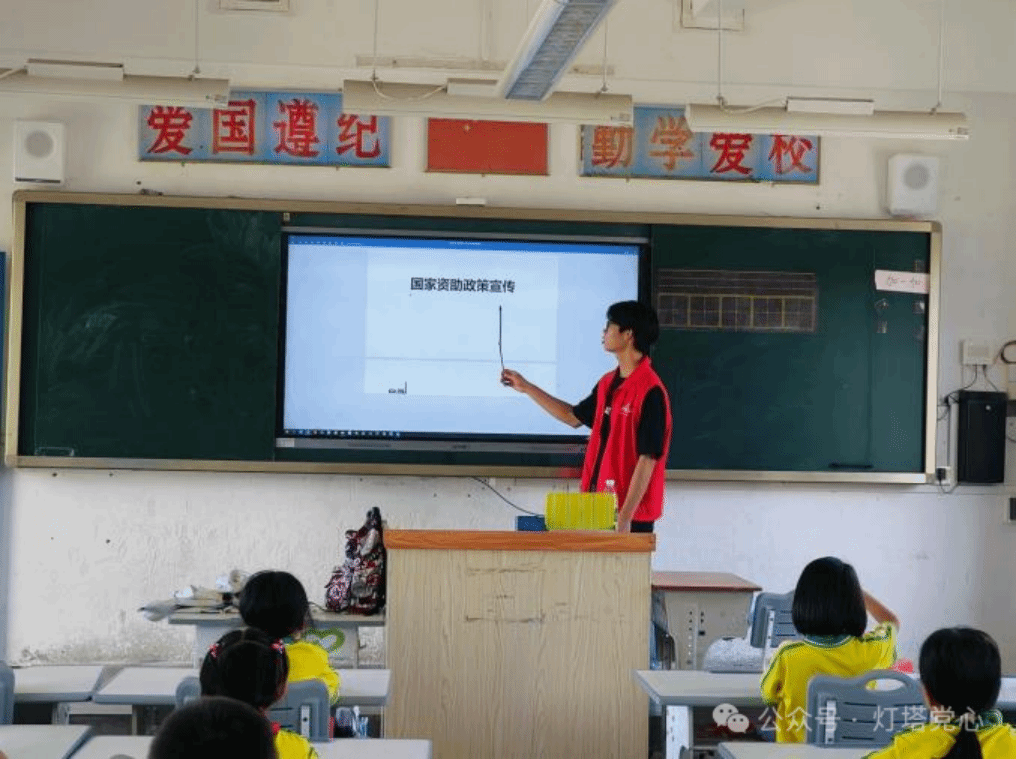 上午,红鹰突击队在石明小学采取了分队员、分年级的方式,深入各个班级,对学生进行了国家资助政策的详细宣传。同时,队员们亲切且耐心地询问了学生的家庭经济情况,包括家中人口数、上学人数、月平均收入以及是否存在升学压力等。通过这样的方式,红鹰突击队不仅更清晰地了解了当地学生的教育现状,还及时将这些信息整理并提交给了学校的相关负责人以及当地的党群服务中心。此外我们开设资助政策宣讲会,用学生能够明白的方式进行政策宣传,对家长则告知其相关申请标准以及流程,努力做到政策宣传全覆盖。