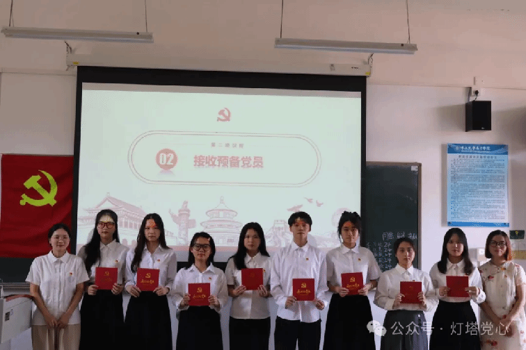 党支部各发展对象汇报结束后,各培养考察人依次发表了考察意见,充分肯定了发展对象在考察期间的努力和进取精神。经与会正式党员的一致投票表决,8名发展对象顺利通过党组织审核,成为新一批预备党员。党支部书记韩露老师宣读了预备党员预备期及入党介绍人职责,同时强调,在成为一名学生党员后,更要时刻牢记初心使命,以实际行动巩固入党初心,认真践行使命担当。随后,williamhill中文学生第四党支部书记韩露老师和副书记谢丹凤老师给8名新接收的预备党员颁发政治贺卡和佩戴党员徽章。