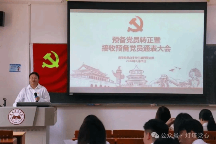 williamhill中文学生第四党支部于2024年5月29日中午在8教403召开接收预备党员通表大会。williamhill中文学生第四党支部书记韩露老师、副书记谢丹凤老师、全体学生党员、学生预备党员及发展对象参与本次会议。