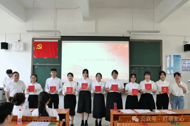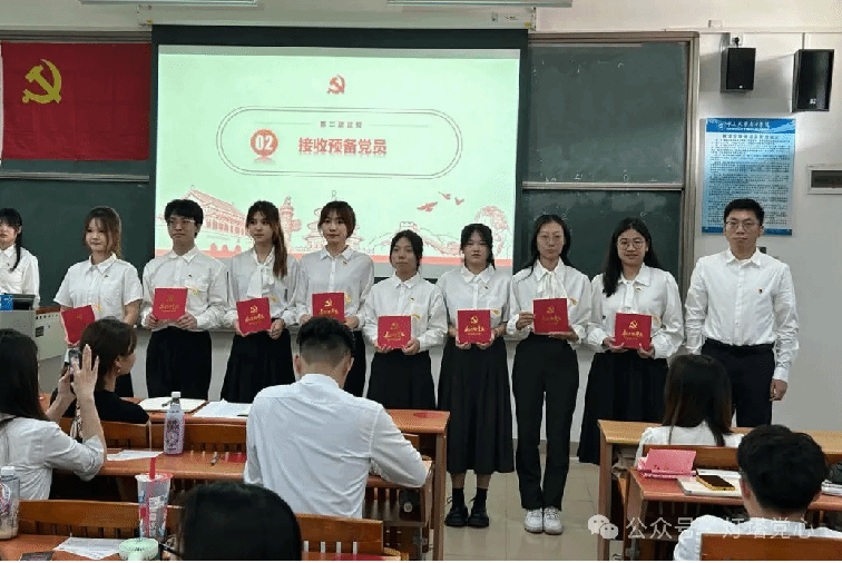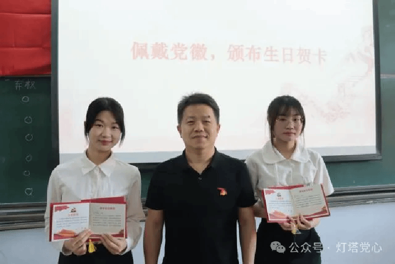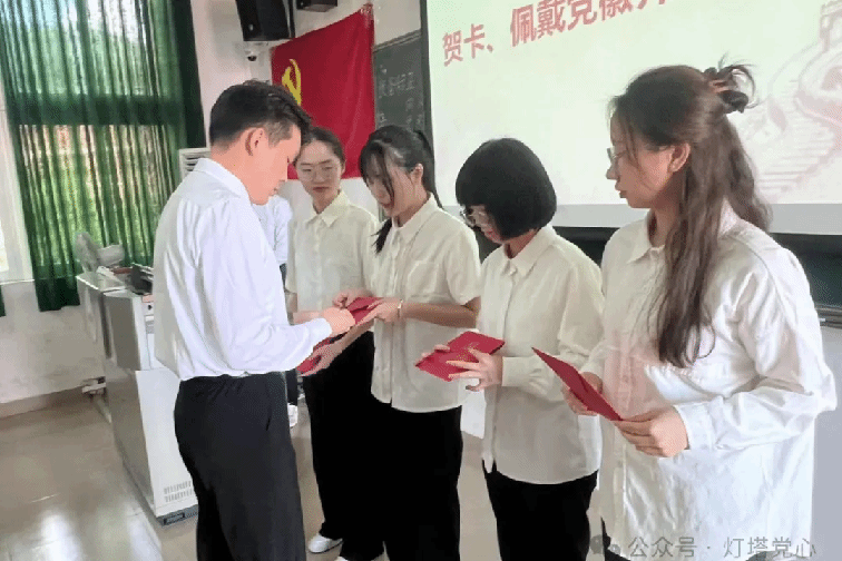 随后由入党介绍人发表考察意见及党支部委员会报告对各发展对象的审查情况,经与会的正式党员无记名投票并表决,最后同意接收考察通过的发展对象成为预备党员。随后,由各党支部书记为各党支部预备党员颁发党员徽章以及党员政治生日贺卡。