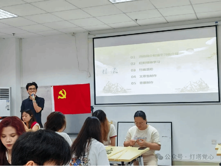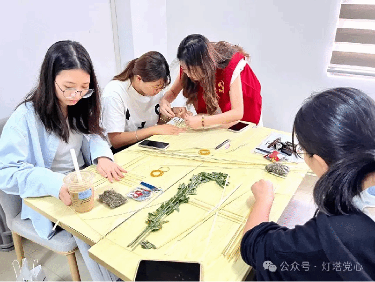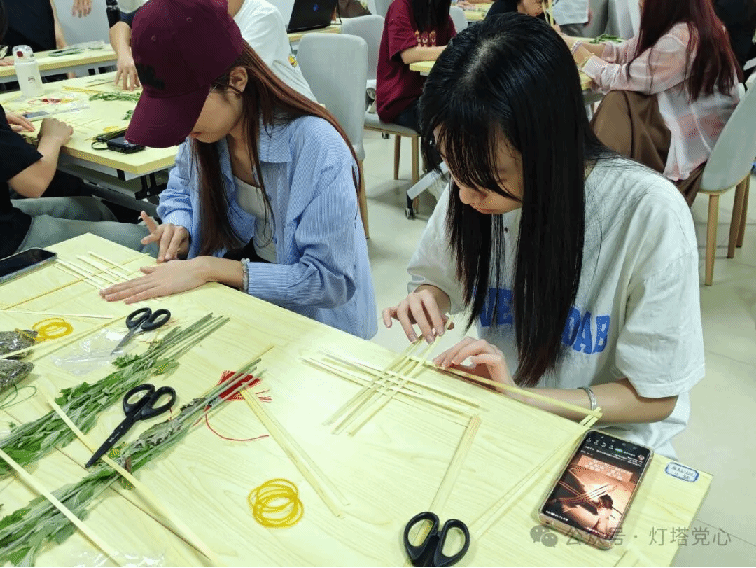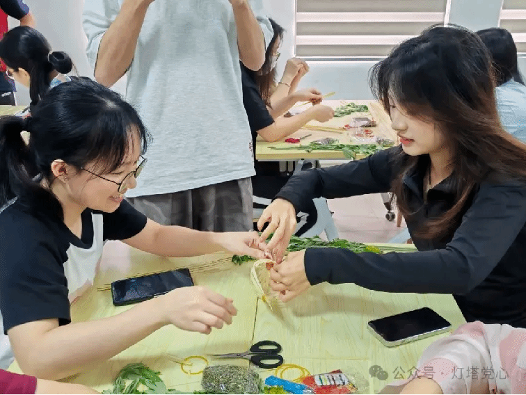 端午佳节将至,为了进一步弘扬中华民族优秀传统文化,增强党支部的凝聚力和活力,了解端午节的历史文化和传统习俗,让党支部成员体验传统技艺,williamhill中文学生第二党支部于6月5日在新综合楼创新谷318开展“编舟渡端午,香囊寄安康”端午传统节庆主题活动,共同制作艾草船和香囊,同时借“艾草船”弘扬“坚定理想、百折不挠”的“红船精神”。