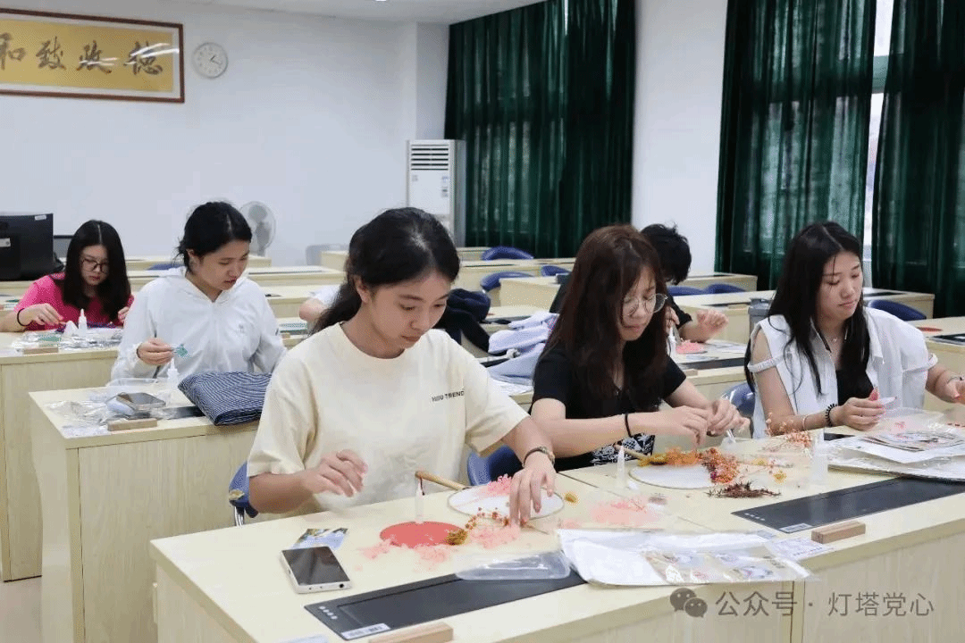 接着,党支部成员们一起投入到团扇的制作中。选花,配色,粘贴成画,欢声笑语不断,气氛轻松愉快。经过半个小时的制作,一把把融入了中国传统文化魅力和充满创意的团扇制作完成。原本素白的扇面上,因为加入了党支部成员们的创意而变得缤纷多彩,碰撞出一幅幅优美的画卷。