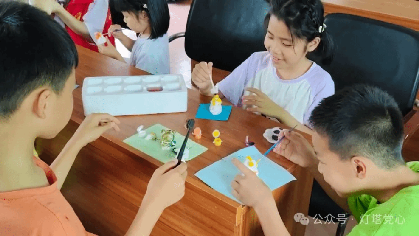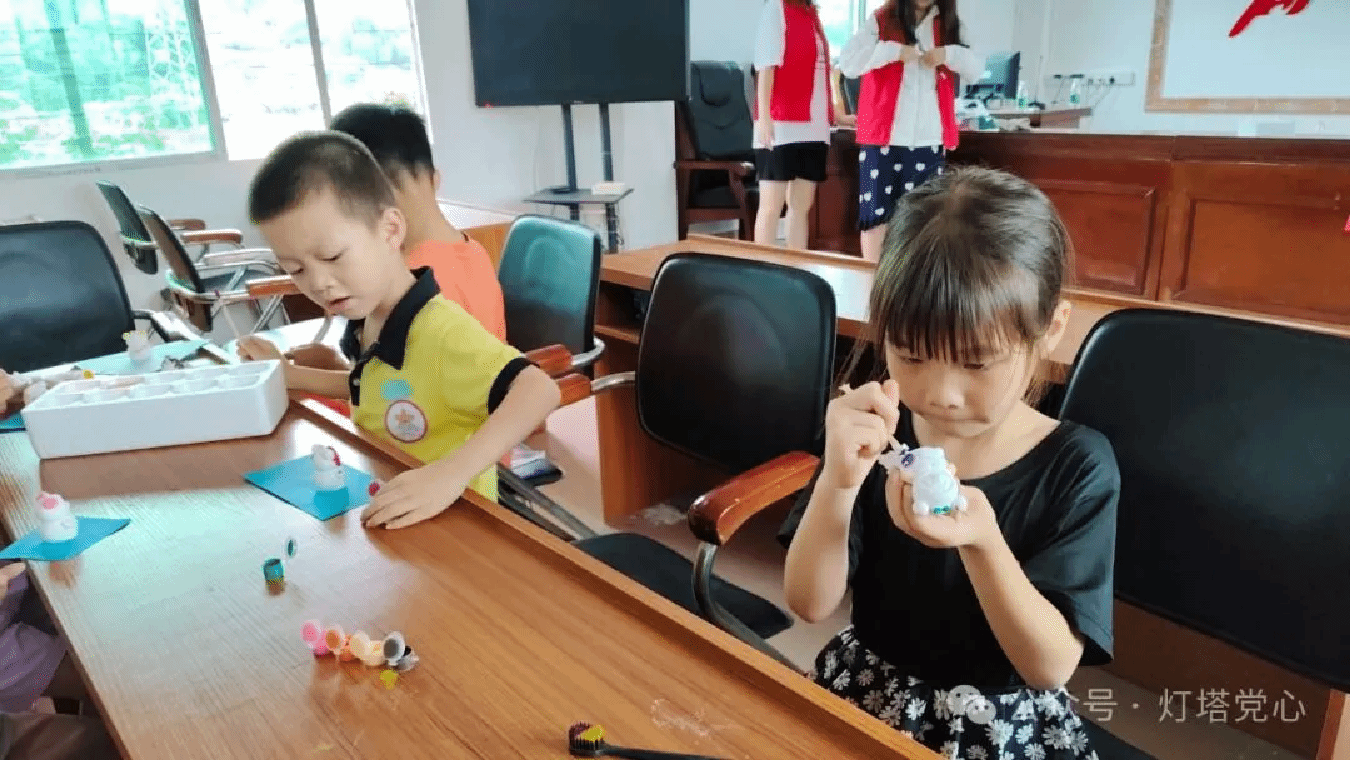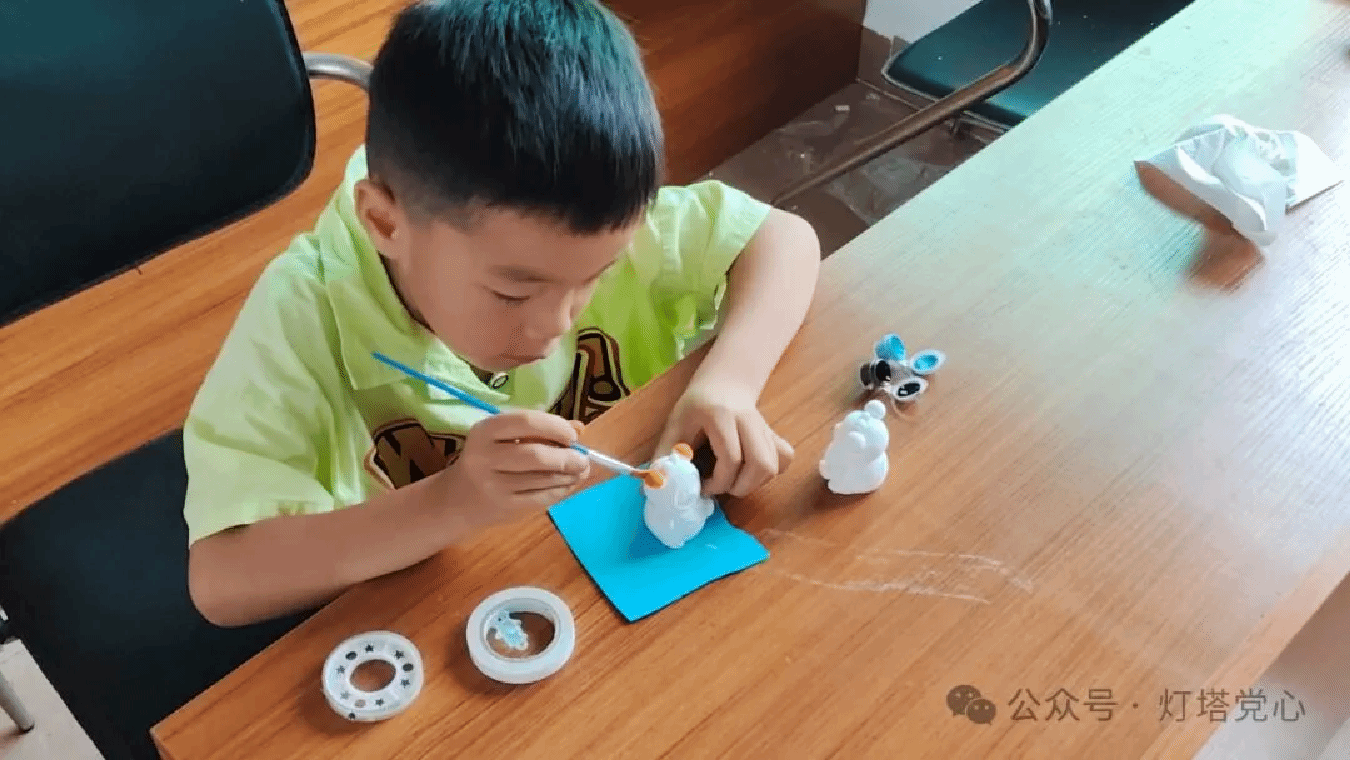 短暂休息之后,随之而来的是手工DIY环节,主讲老师用亲切而生动的语言,向小朋友们介绍着手工DIY的步骤和方法。小朋友们的眼睛里闪烁着光芒,在老师和志愿者的指导下,专注地给石膏小熊上色。他们的脸上是认真的神情,挥动着手中的画笔,仿佛在施展着神奇的魔法。每个小朋友都沉浸在自己无限的想象空间之中,为小熊添上独特的色彩,充满了童真与趣味。