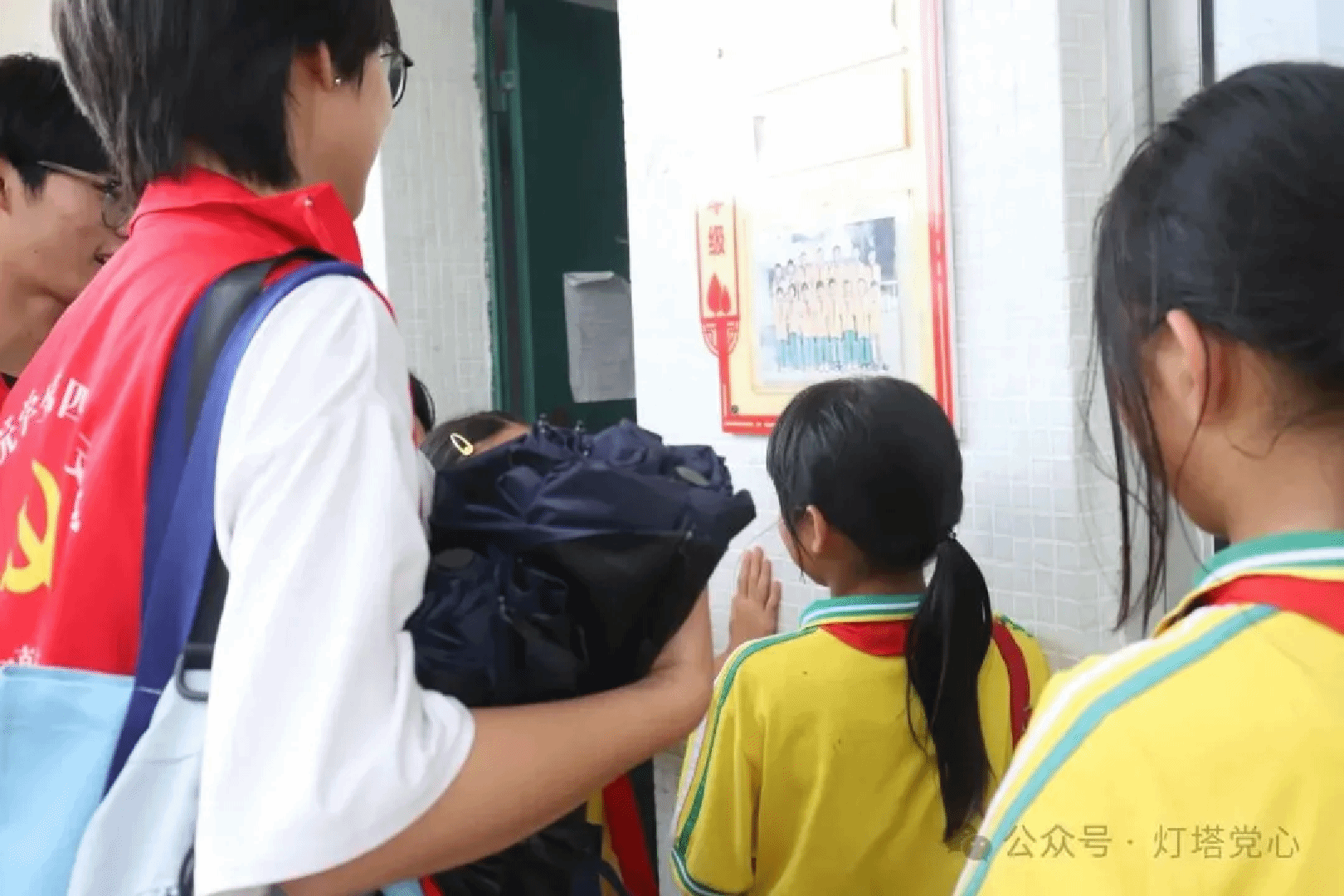 绿树成荫,空气清新,那是石明小学——孩子们成长和学习的乐园。来到学校,我们先与校长和张主任确定好义教活动的流程和所需教室,之后便被一群活泼可爱的学生带领着熟悉校园以及各年级学生情况。这群天真烂漫的小导游也表现出对红鹰心下乡突击队将要开展的义教活动的憧憬,眼中尽闪烁着期待之光。让我们一起点燃知识的火花,以大学生暑期三下乡暨高校携手百千万工程共筑资助下乡的义教活动照亮他们求知的道路。
