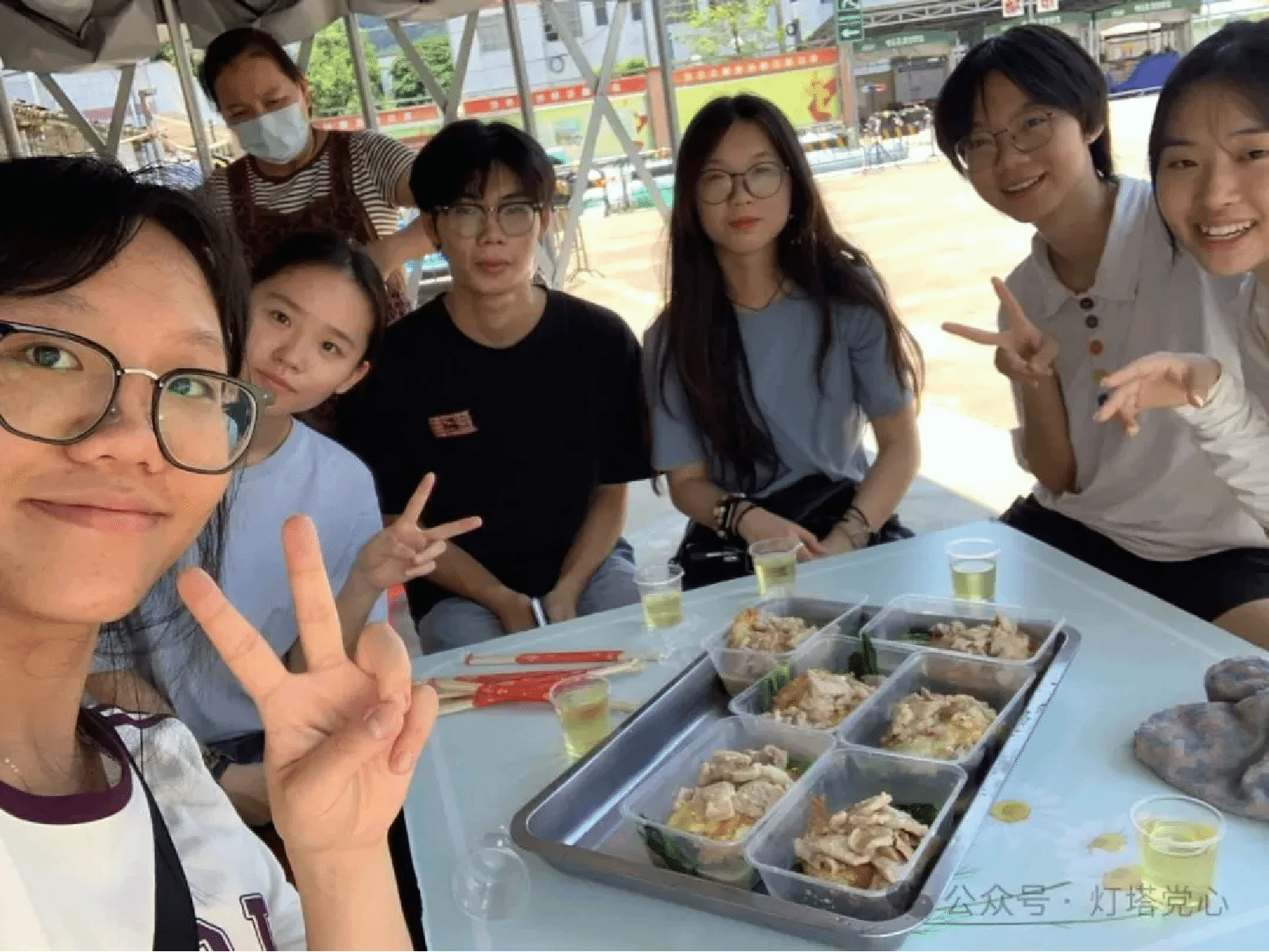 人间至味,烟火不散。当地丰盛的农家特色菜让我们既品尝到健康绿色的美味佳肴,也让我们感受到村民的淳朴善良。而后,红鹰心下乡突击队便同村委会沟通好活动需要的物资寄存安排,场地支持等各种帮助。青春给我们一股不可阻挡的力量,红鹰心下乡突击队正是抱着这份朝气蓬勃、踏实做事的态度投身于石明村的建设与发展,希望以热情和智慧点亮这里的每一片土地。