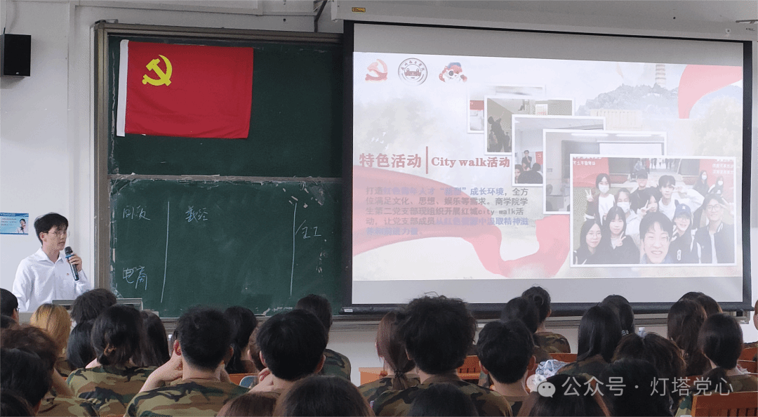 大会上,赖晟涵同学详细介绍了党支部的党建工作情况和发展现状。他强调,williamhill中文学生第二党支部以“雁起流溪”党建模型为核心,辅以“七个有力”的实践策略,不断创新活动形式,丰富活动内容,旨在不断提升党员的党性修养和实践能力。党支部举办的特色活动,如“党史我来答”、“City Walk”、“快乐运动跟党走”等,不断增强党支部成员之间的凝聚力,提高他们对党的认识和理解。