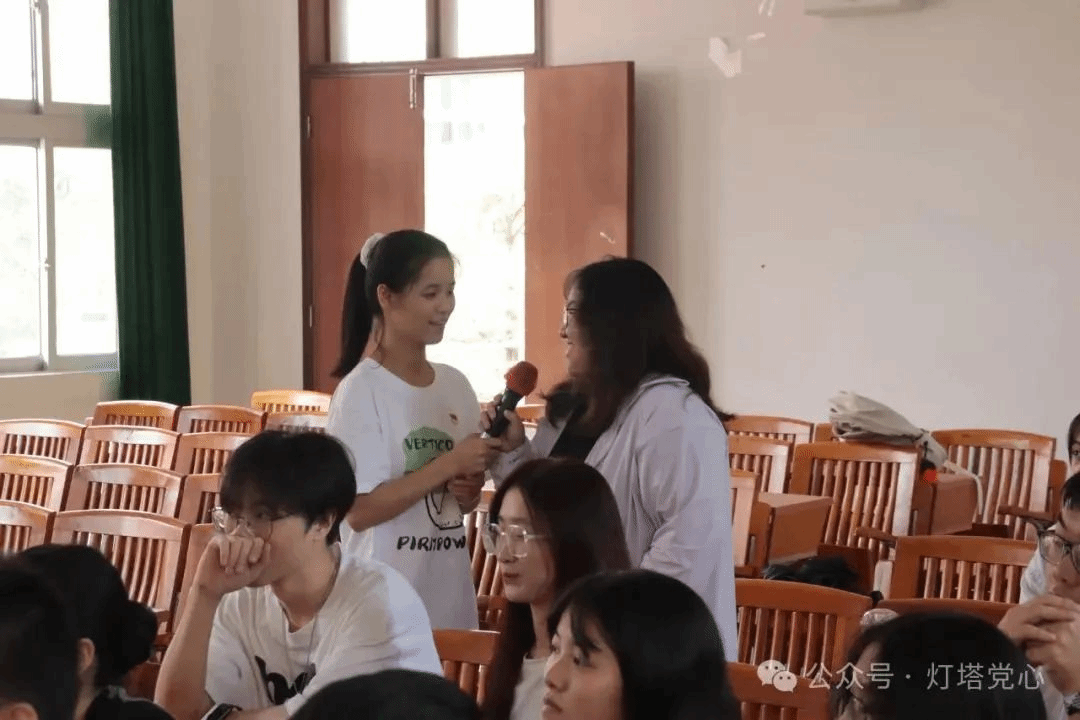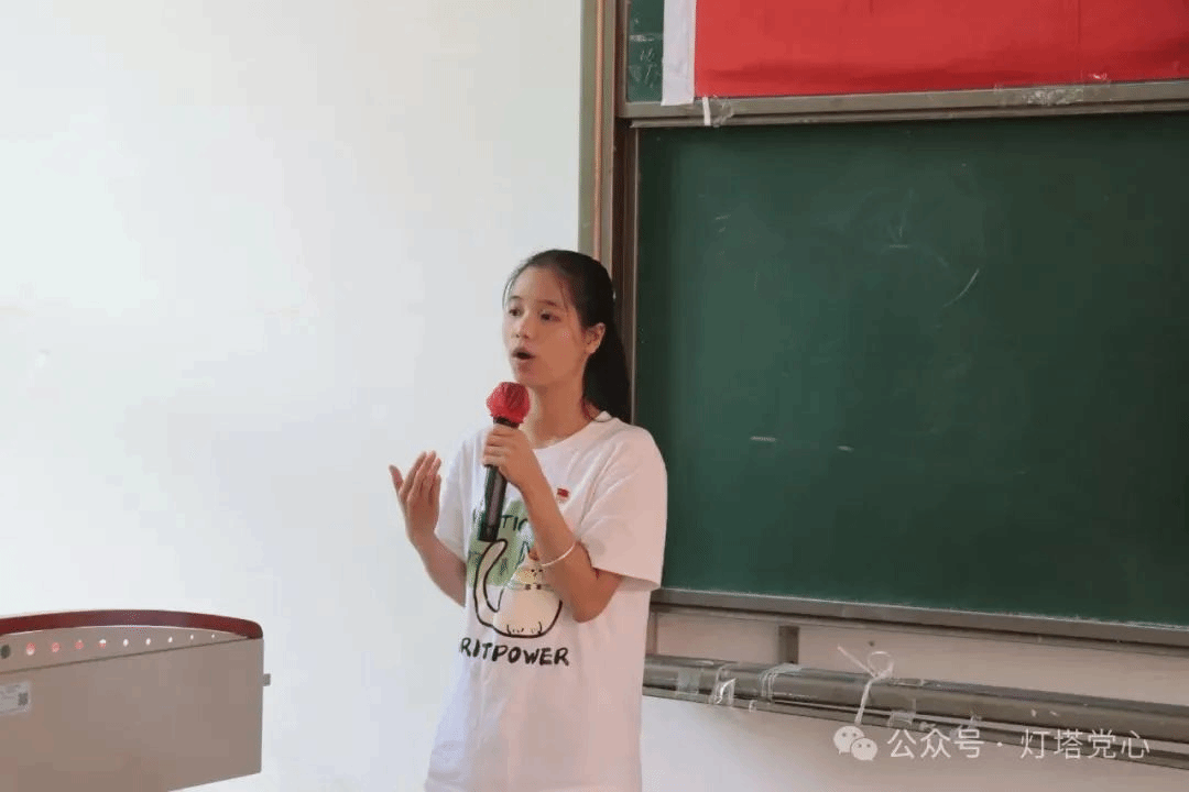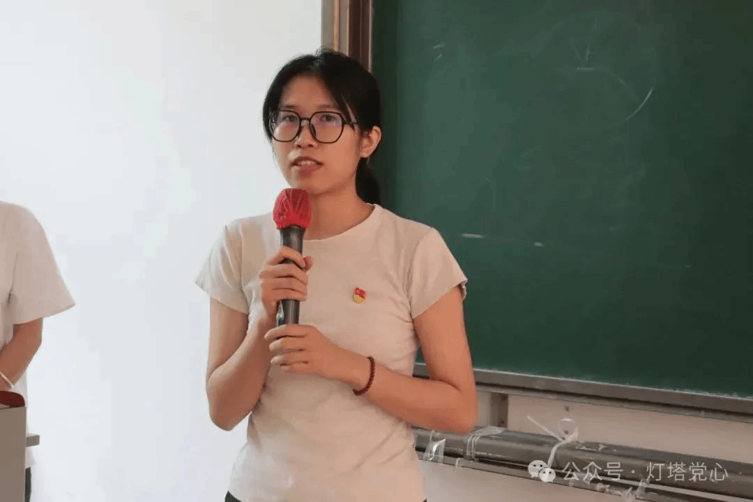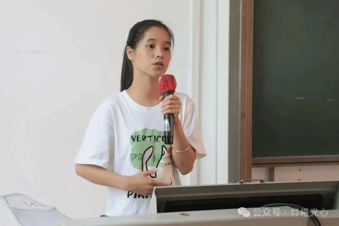接下来,由周赖冰同志对党支部的基本概况和建设情况、入党流程及条件、入党申请书相关材料等内容进行介绍,并对新生提出的问题进行答疑。其中包括党支部的专业特色、制度建设情况、品牌建设情况、特色活动情况、党员风采五大部分。此外,她还介绍了党支部2024届优秀毕业生党员代表苏祎旸同志。学姐寄语道:“大学时光,珍贵而又短暂。在这里,我们能够收获珍贵纯真的友谊,汲取丰硕的专业知识,积累丰富的人生体验。建议大家多多突破自身局限,勇敢地打破舒适圈,树立明确的目标并持续付出行动,努力去找到自己真正热爱的事物。衷心祝愿各位学弟学妹们度过充实而快乐的大学时光,学业有成,快乐顺遂。”