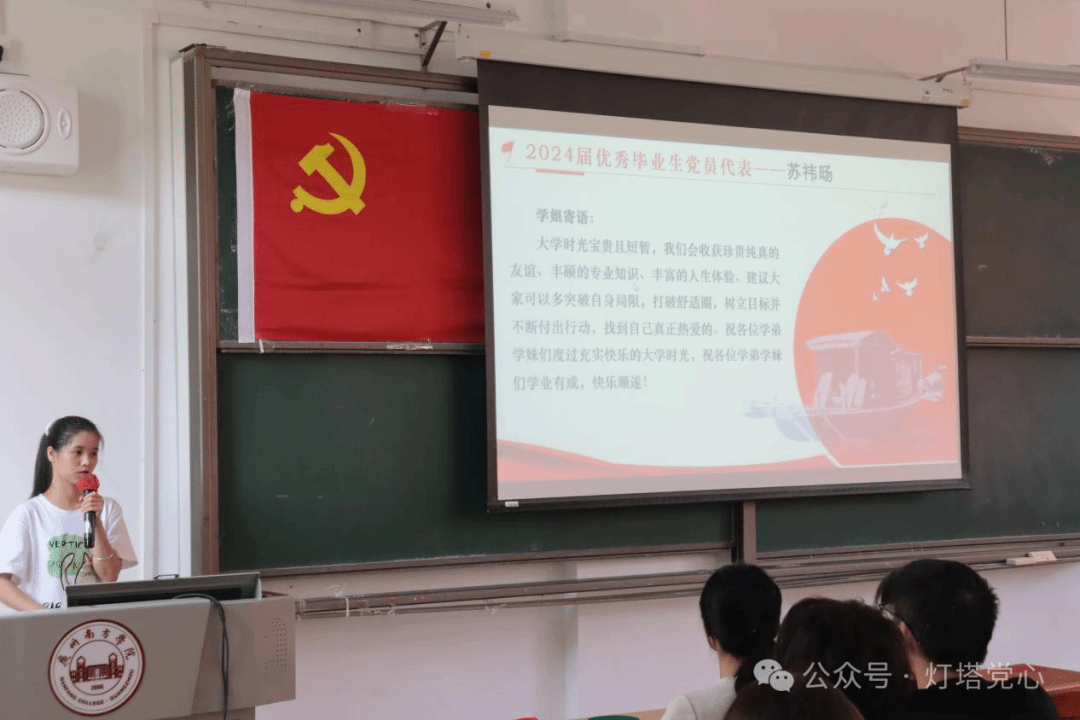 随后,各党支部党建工作助理结合自己的实践经验分享了自己在党支部工作的收获与成长。党支部党建工作助理寄语道:“大学时光,珍贵而又短暂。在这里,我们能够收获珍贵纯真的友谊,汲取丰硕的专业知识,积累丰富的人生体验。建议大家多多突破自身局限,勇敢地打破舒适圈,树立明确的目标并持续付出行动,努力去找到自己真正热爱的事物。衷心祝愿各位学弟学妹们度过充实而快乐的大学时光,学业有成,快乐顺遂。”