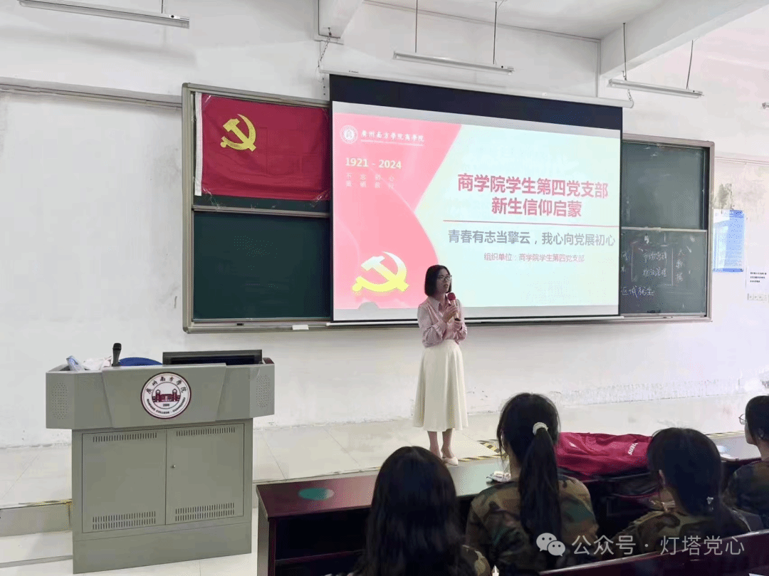 接着,由党支部书记为全体新生作入党启蒙教育报告。从入党程序、发展党员的具体程序、入党申请书相关材料填写等发展流程进行讲解,让新生加深对入党的认识及对流程的讲解。希望2024级新生从入党启蒙教育开始,牢固树立正确的世界观、人生观和价值观,积极向党组织靠拢,早日成长为担当民族复兴大任的时代新人。