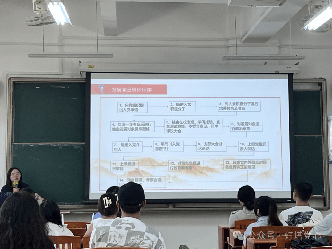 随后,李怀厅同志从入党程序、发展党员的具体程序、入党申请书相关材料填写等发展流程进行讲解,让专升本新生加深对入党的认识及对流程的讲解。