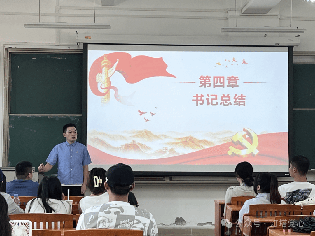 最后熊新新书记对本次宣讲会进行总结发言:新生同学们可以端正入党动机,深化对党的认识,厚植爱党爱国情怀,坚定理想信念,积极向党组织靠拢,牢记初心使命,心怀理想,扬帆起航,为共产主义信仰努力奋斗。