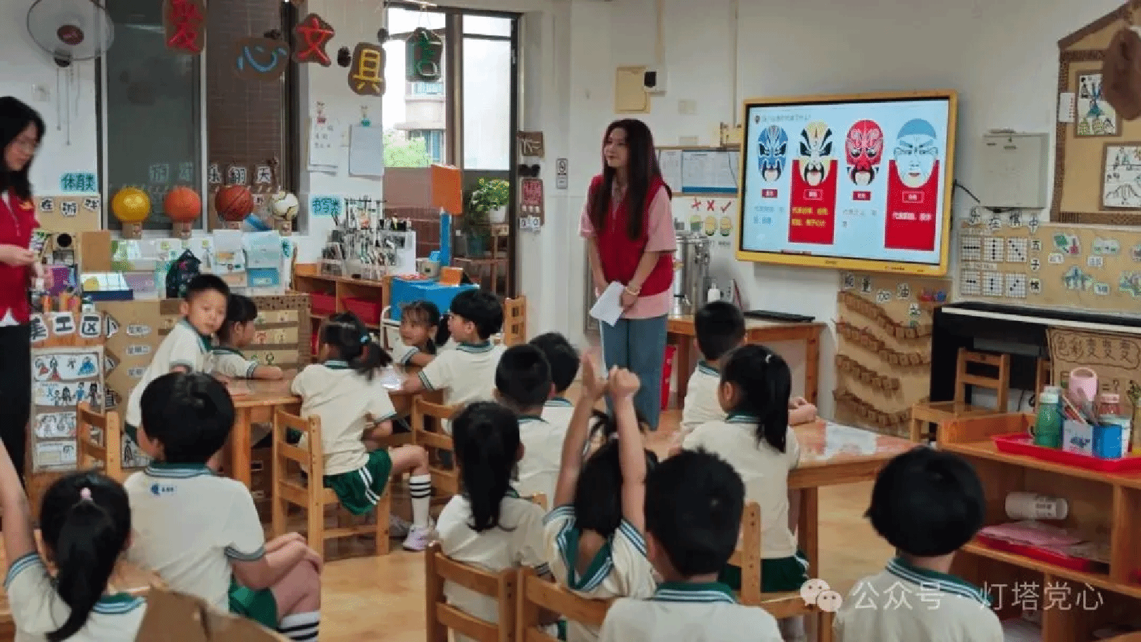 活动伊始,党支部成员化身“小老师”,以富有感染力的话语和生动形象的教学方式向小朋友们进行了亲切的自我介绍。初步熟悉后,主讲老师向小朋友简要介绍了粤剧及其脸谱艺术的历史溯源和特色,带领他们领略中华优秀传统文化的博大精深,并通过播放一则精彩的粤剧视频片段,吸引孩子们的注意力,巧妙地将他们引入了当天的活动主题。