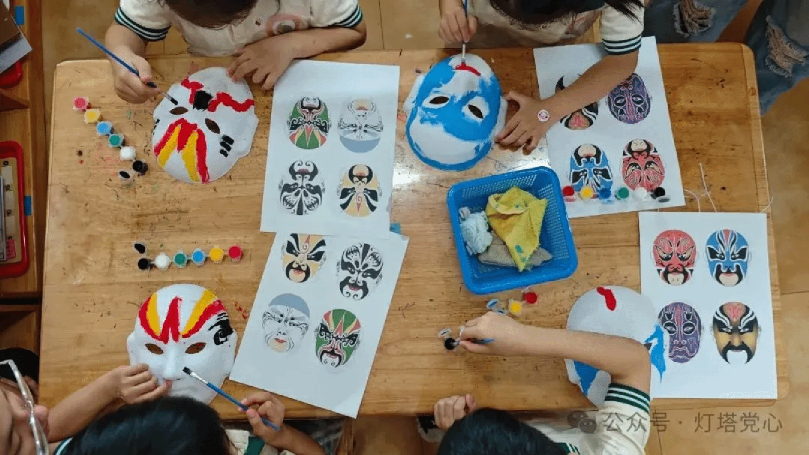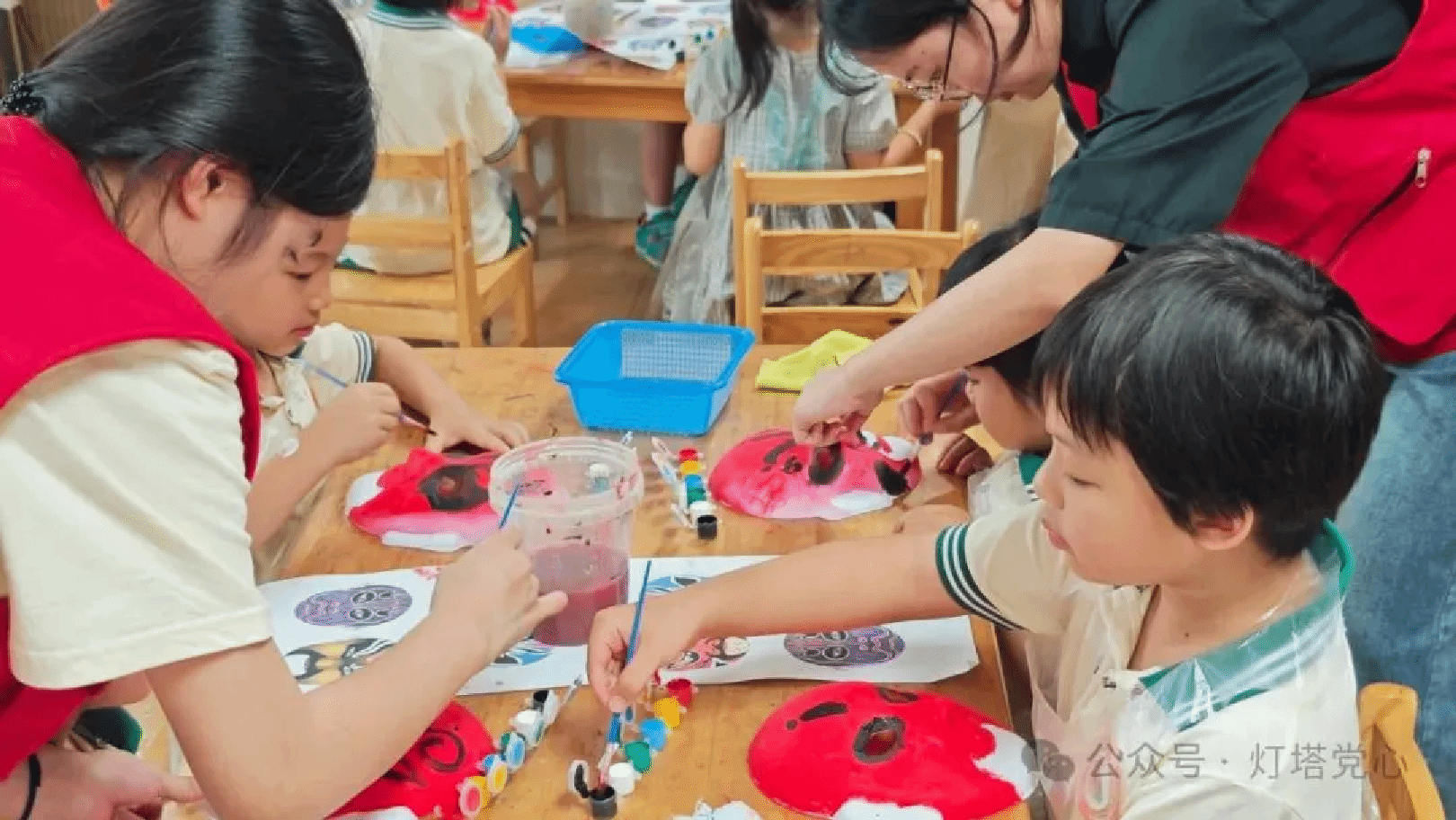 粤剧脸谱的手工制作是小朋友最期待的环节。每位志愿者首先详尽地向小朋友们介绍了手工制作粤剧脸谱的各个步骤,包括色彩的选择、线条的勾勒以及色彩的填充等。随后,志愿者们与小朋友们一同动手,创作出各自喜爱的粤剧角色脸谱。在制作过程中,志愿者们鼓励小朋友们发挥自己的想象力和创造力,激发他们的创新精神。虽然过程中遇到了一些挑战,但志愿者们始终保持耐心,一步步引导小朋友们,直至每个小朋友都能完成自己独特的脸谱作品。