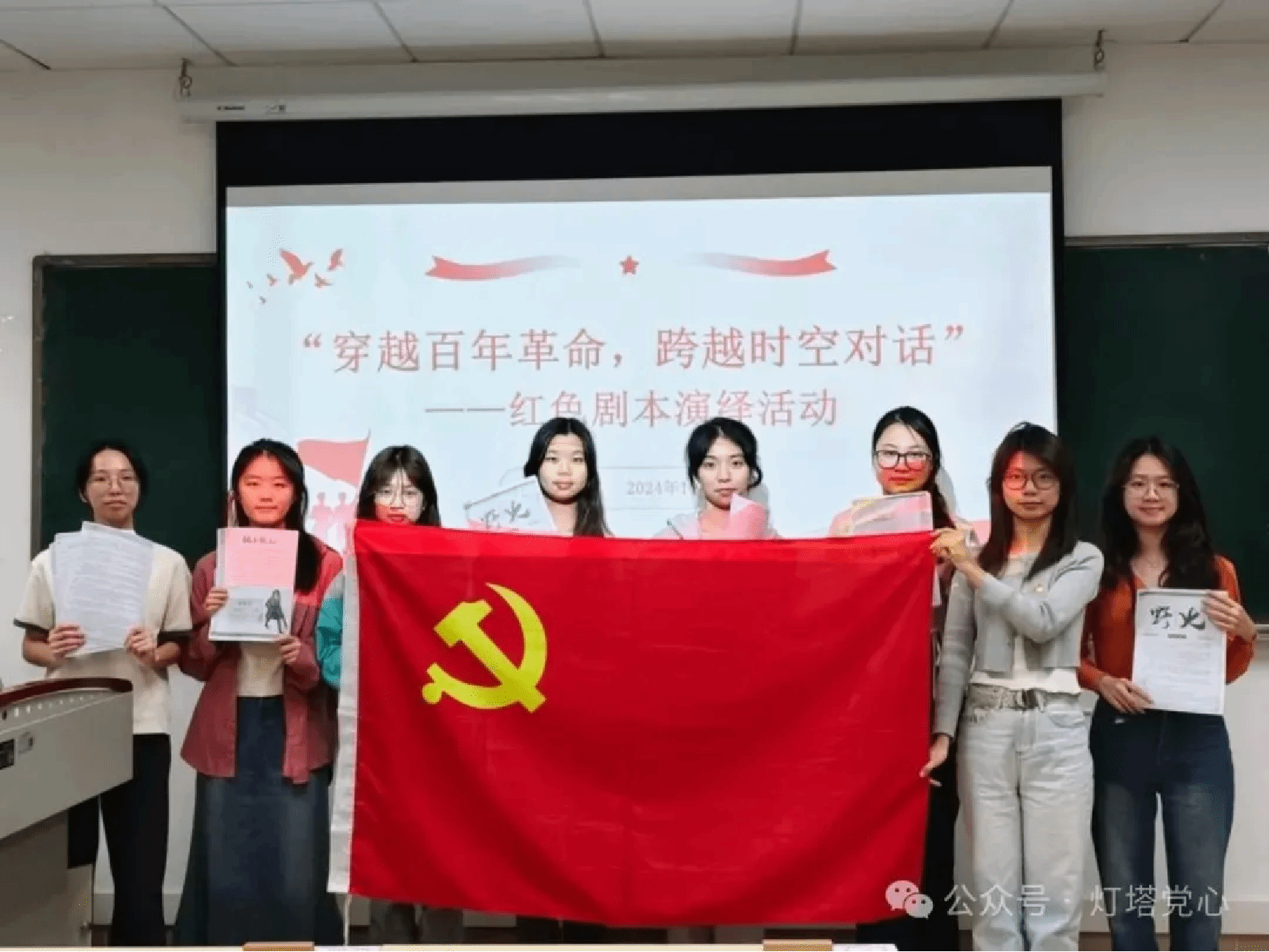 为更好的传承红色基因,深入学习革命先辈英勇无畏的斗争精神,加强党组织建设,创新党建形式,提升党支部成员们历史使命感与时代责任感,williamhill中文政商党支部于2024年10月24日晚18时30分在9教109举办了第二期“穿越百年革命,跨越时空对话”红色剧本演绎活动。党支部成员们积极报名,踊跃参与。