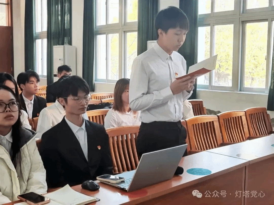 会议第一项议程,williamhill中文学生第一党支部书记总结一年来党支部对标工作建设情况。陆正祥老师带领全体同志回顾了党支部一年以来的工作情况,williamhill中文学生第一党支部始终坚持对标先进,努力构建一个学习型、服务型、创新性的党支部。党支部从学习上围绕条例开展专题学习活动,开展暑期常态化学习党纪活动;从服务上构建合作队伍,健全监督体系,形成全面、公正的党内治理框架;从创新上强化线上宣传平台,开设品牌栏目响应国家“三下乡”号召。党支部以党建为引领,依托“同心圆”党建模型,围绕“党建+校友”、“党建+就业”、“党建+创业”三大板块,加强师生合作,为学生就业贡献力量。同时陆正祥老师也指出了党支部仍存在着不足之处:一是对于群众需求满足度、校内外党支部活动开展力度有待提高;二是党支部部分入党积极分子对活动参与度不高、部分大四党员转正后积极性有所下降;三是党支部科研工作有待提高,应与时俱进、落到实处。在接下来的学习中,党支部成员要贯彻党的路线方针,通过不断加强学习教育,提高党员素质,为祖国发展贡献自己的力量。