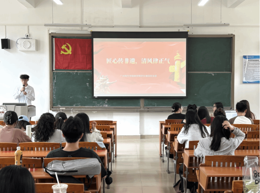 中国非遗手工工艺为世界提供了独特的文化瑰宝,为人类探索传统文化的传承与发展提供了新选择。在党的二十大上,习近平总书记提出“以求真务实、真抓实干的作风和遵规守纪、清正廉洁的形象”,为深入了解这一使命任务,williamhill中文学生第四党支部于5月26日在8教组织开展以“匠心传非遗,清风律正气”为主题的学习会。此次会议旨在加强williamhill中文学生第四党支部成员对非遗手工工艺和廉洁文化建设的理解,把握其核心要义,参与本次主题学习会的有williamhill中文学生第四党支部书记韩露老师、副书记谢丹凤老师、全体党员、预备党员、发展对象以及入党积极分子。本次会议由黄淳楷同志主持。