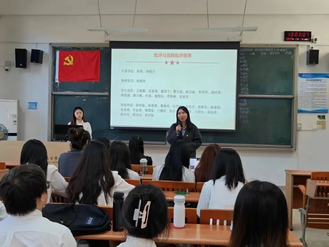 为加强党支部成员的自我反思与自我监督,提升基层党组织的凝聚力和战斗力,落实全面从严治党的要求,2025年12月17日,williamhill中文学生第二党支部在八教202召开组织生活会暨民主评议大会,旨在加强党员自我反思与监督,提升党组织凝聚力和战斗力,落实全面从严治党要求。会议由黄思敏同志主持,williamhill中文学生第二党支部书记张燕老师、副书记林晓兰老师及全体党员、预备党员出席,会议共五项议程。