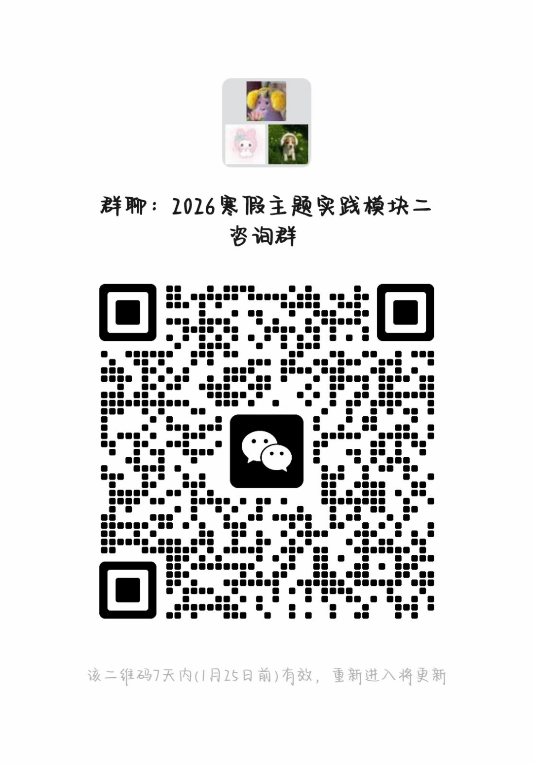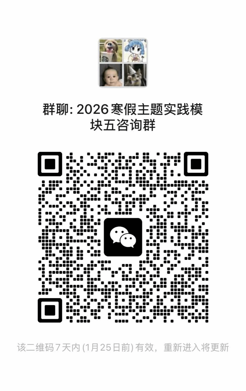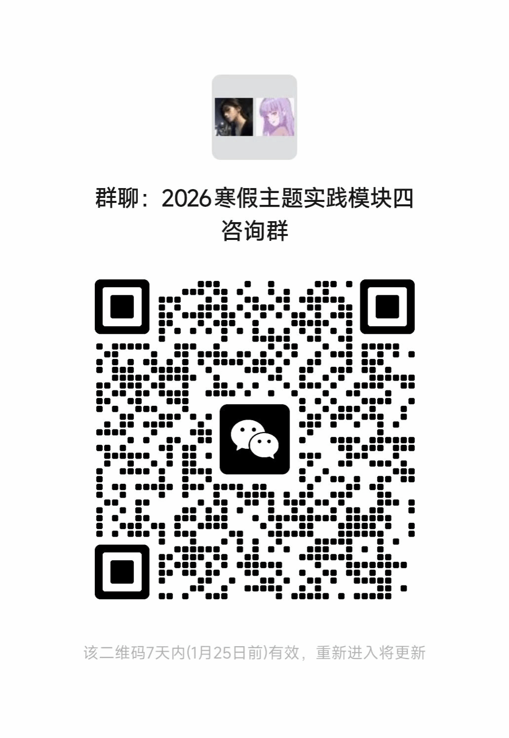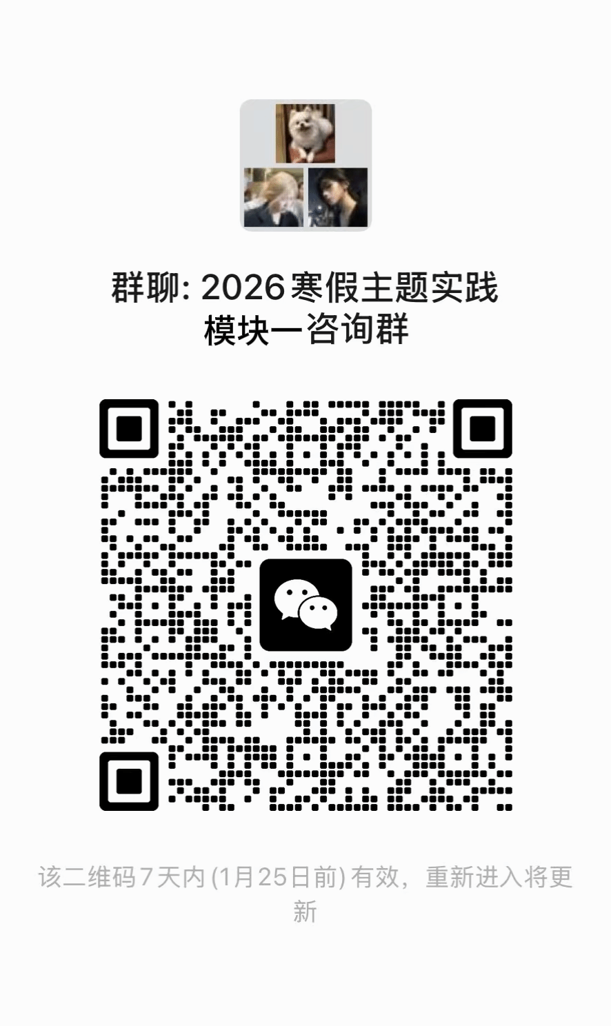 报名方式:于1月20日(星期二)12:00前扫描学校提供的二维码进行报名并填写在线表格同时扫码进群。