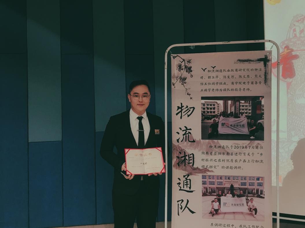 2019年10月 中山大学南方学院“暑期三下乡”社会实践活动评优一等奖;