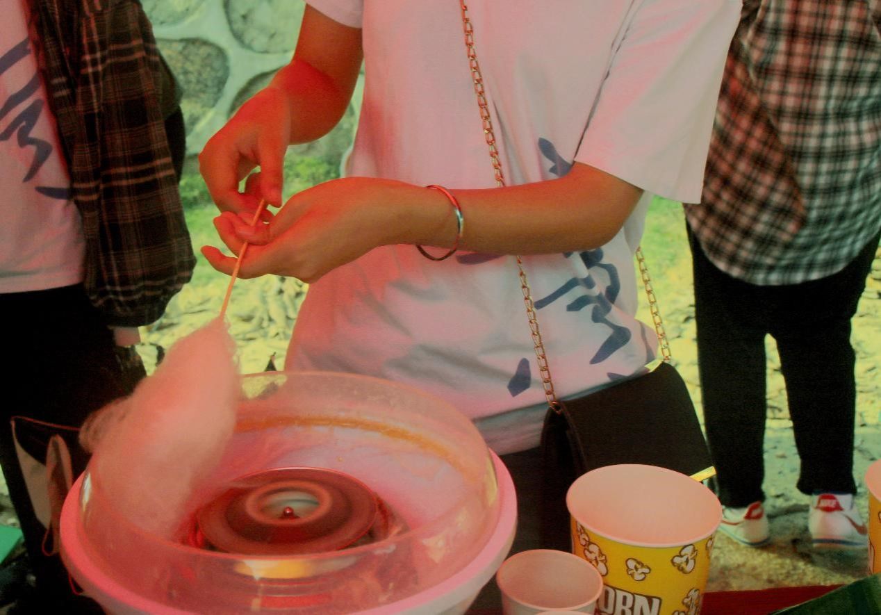 活动结束,同学们手持自己打下的“一片江山”——积分表进行礼品兑换。除去其他物件,兑换礼品处还有饮料、爆米花和棉花糖等零食,小编非常仁义地替大家品尝了它们的味道,并且在这里说一声:“真的十分nice!”