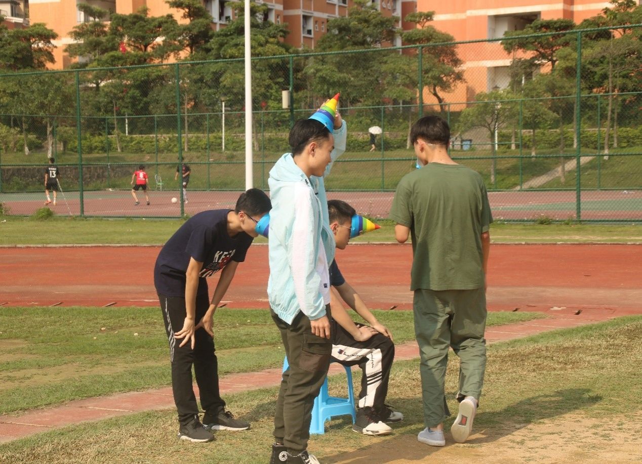 在“三角帽大作战”里,帽子都快被被玩坏了,同学们一个个独角兽一样晕头转向地去抢夺场上为数不多的塑料椅宝座,让人忍俊不禁。