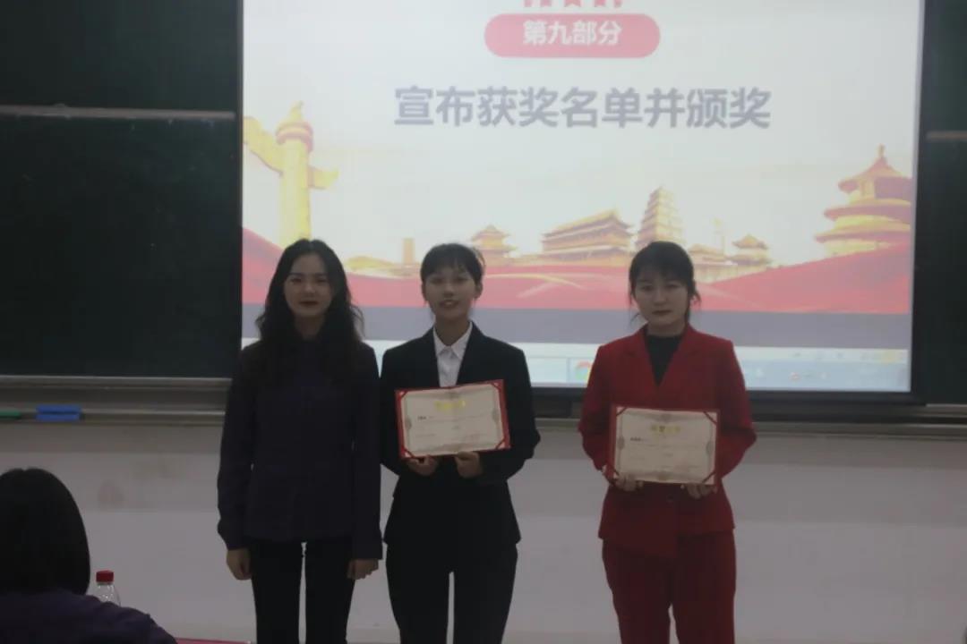 激烈角逐、各颂其词;慷慨激昂的演讲、选手的精心准备为建党百年增添色彩。最终各个奖项尘埃落定,比赛共决出一等奖一名、二等奖两名、三等奖两名、优秀奖两名。此次比赛由陈利莎同学拔得头筹。