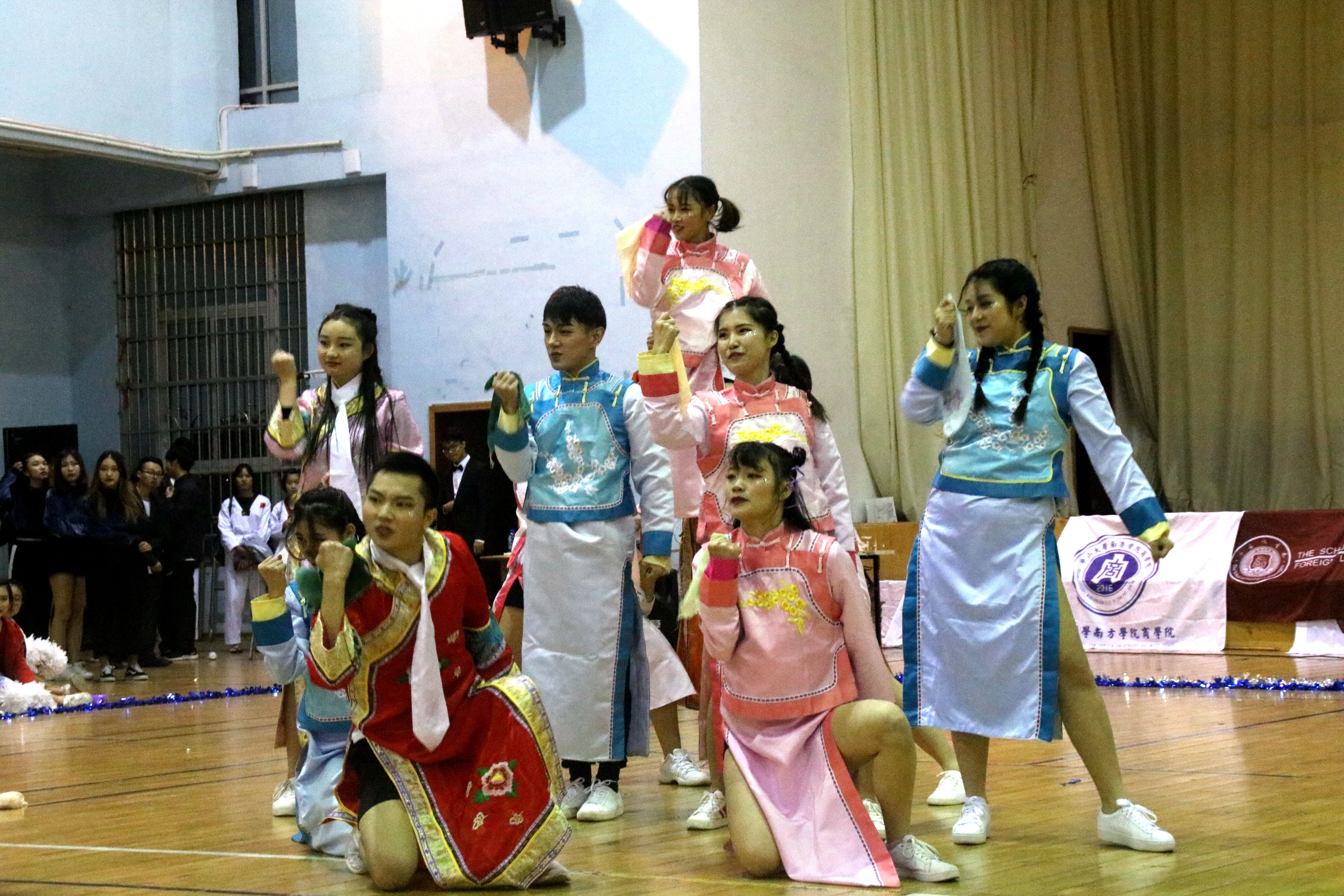 啦啦操环节中,williamhill中文inner舞蹈队的宫廷服造型让人眼前一亮,队伍的每一位队员都分别扮演着“还珠格格”里的不同角色,剧情与舞蹈的结合让人出乎意料,这种创新给观众们一种视觉上的冲击,赢得了评委的一致好评。