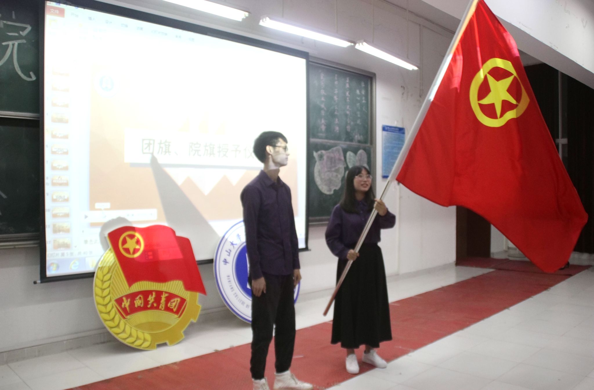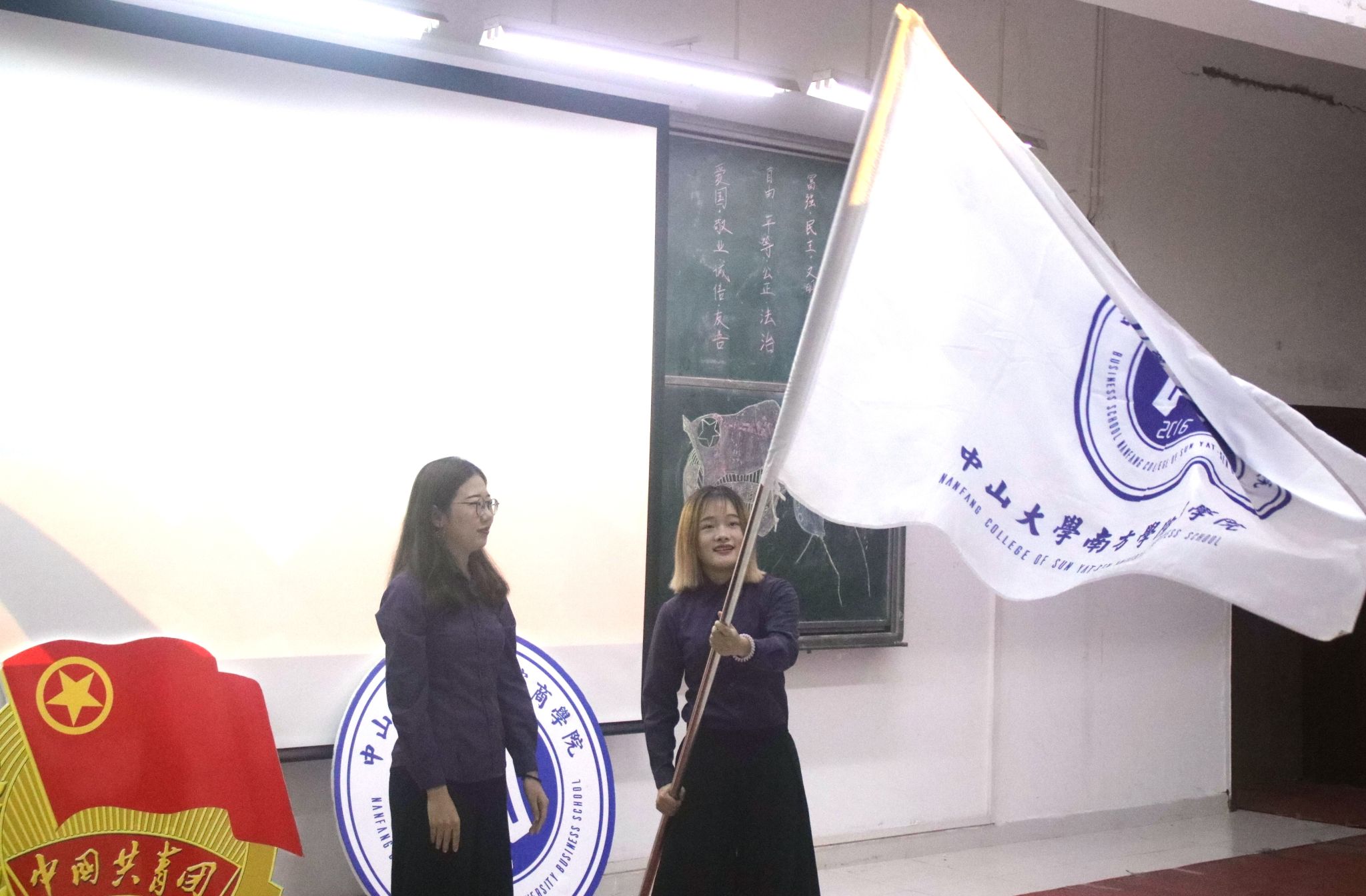 随后是庄严的团旗、院旗授予仪式。梁杰恒同学和张燕佳同学分别将团旗,院旗授予学生代表谭晓慧同学和黄舒琪同学。学生代表手中接过的旗帜不仅代表着williamhill中文第三届团委学生会工作的开端,更是象征着williamhill中文团学责任的继承与发扬。