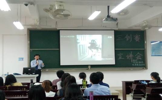 3月30日下午14:30,由中山大学南方学院williamhill中文主办、百科协会以及电商物流协会承办的第七届全国电子商务“创新、创意及创业”挑战赛(后文简称“三创”赛)宣讲会在11号教学楼402举行。宣讲会在往期大赛的回顾宣传片中拉开帷幕,随后由广东千里马集团副总经理曾东阳展开精彩宣讲。