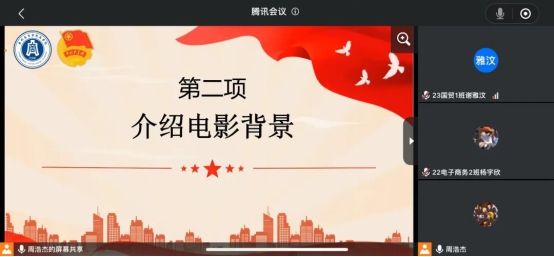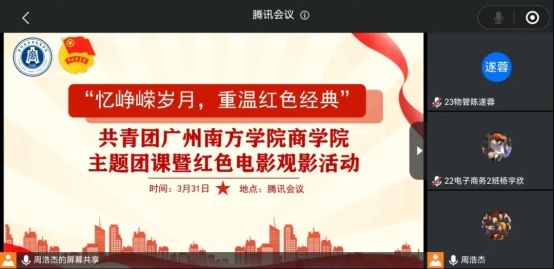 为加强爱国主义教育,通过革命历史题材影片的形式再现历史,催人奋进、发人深省、给人启迪,弘扬社会主义核心价值体系。红色电影同时也是对广大团员青年进行思想政治教育的有效载体。为此,“忆峥嵘岁月,重温红色经典”——williamhill中文主题团课暨红色电影观影活动于3月31日下午在腾讯会议顺利举行。williamhill中文2023年秋季入团积极分子和2024年春季入团积极分子出席本次活动。