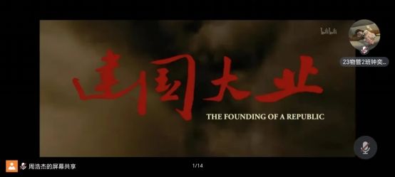 观影活动在悠然的团歌中拉开了序幕。在回顾祖国筚路蓝缕建国历程的同时,深化革命传统教育,激发广大团员青年的爱国主义热情。本次活动为同学们分享电影《建国大业》。