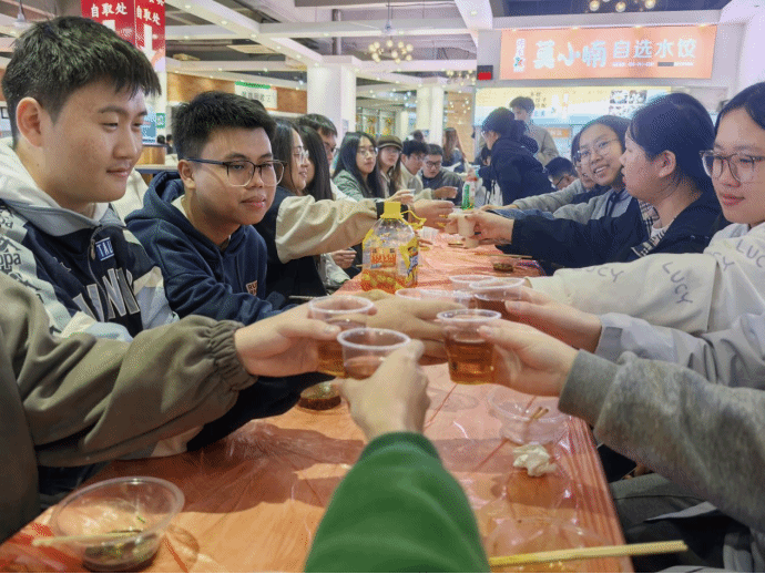 随着一盘盘热气腾腾的饺子端上餐桌,大家纷纷举杯共饮,品尝着这份特别的冬至美食。饺子香浓,情谊更浓,每一口都充满了家的味道和学校的关怀,让这个冬至变得更加意义非凡。