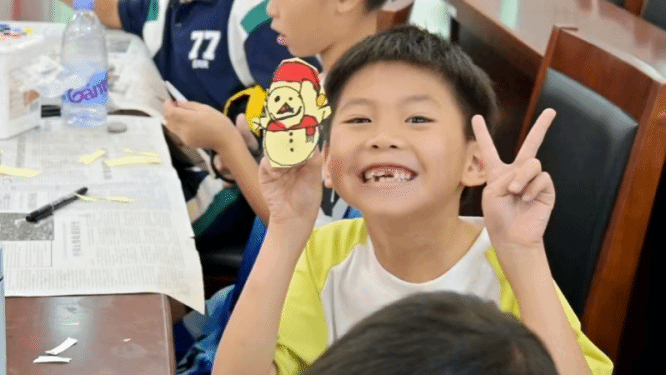废旧物料的创意重构:环保理念的实践浸润。手工课程以 “环保手工制作” 为主题,吴泽思、李丽琼两位小老师构建 “理论 — 实践 — 反思” 的教学闭环。通过 “废旧物品价值” 的讨论,让 “循环利用” 的环保理念悄然扎根;实践环节提供废旧纸盒、报纸、瓶盖等材料,学生以小组为单位完成 “功能重构”—— 纸盒变 “机械人偶”、瓶盖拼 “生态图景”、报纸卷 “立体雕塑”。作品展示时的 “理念分享” 环节,孩子们阐述 “废旧吸管作机械臂的逻辑”“报纸褶皱模拟山峦肌理的巧思”,让环保认知从概念落到行动。看着孩子们用平凡物料创造出的惊喜,能真切感受到创意的无限可能,环保意识就在这一针一线、一粘一贴中自然生长。