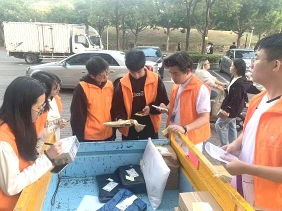 三天时间里,志愿者们用行动诠释着“奉献、友爱、互助、进步”的志愿精神。他们中有人放弃饭后休息,提前到岗整理配送清单;有人主动分担重件包裹,哪怕手臂酸痛也笑意盈盈;有人耐心解答疑问,引导大家有序登记,用热情驱散了双十一取件的焦灼。包裹堆成的“小山”被逐一清空,配送车往返的轨迹织成了校园里最温暖的网,这份双向奔赴的美好,让互助友爱的种子在南苑落地生根。