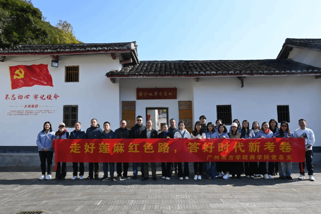 12月27日上午,团建队伍首先抵达从化区良口镇莲麻小镇。作为广州市著名的红色旅游景点和生态宜居美丽乡村,莲麻小镇不仅有着优美的自然风光,更承载着深厚的红色文化底蕴。在当地向导的带领下,大家先后参观了莲麻村党群服务中心、黄沙坑革命旧址纪念馆等场所,详细了解了莲麻村在党建引领下实现乡村振兴的发展历程,并被革命先辈在艰苦环境中坚守信念、奋勇抗争的红色精神深切浸染。漫步在古村落的石板路上,古朴的民居、整洁的村容与周边的绿水青山相映成趣,让大家切身感受到乡村振兴战略为农村带来的巨大变化,进一步坚定了立足本职、服务社会的理想信念。