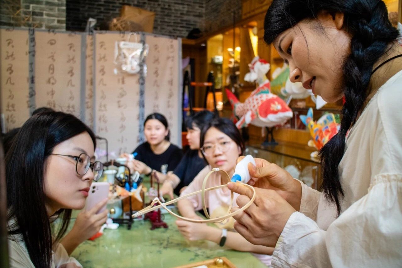 沉浸式跟着冯艳慈老师学做鱼灯,老师手把手教我们扎骨架、糊灯纸,连缠线的方向、角度都细细叮嘱:“鱼嘴要微微翘,才像游在水里。”看着自己笨手笨脚做的小鱼灯渐渐成型,忽然读懂了非遗传承里藏着的耐心与热爱。原来,手艺不只是技法的叠加,更是手心相传的温度,是匠人精神在指尖的延续。