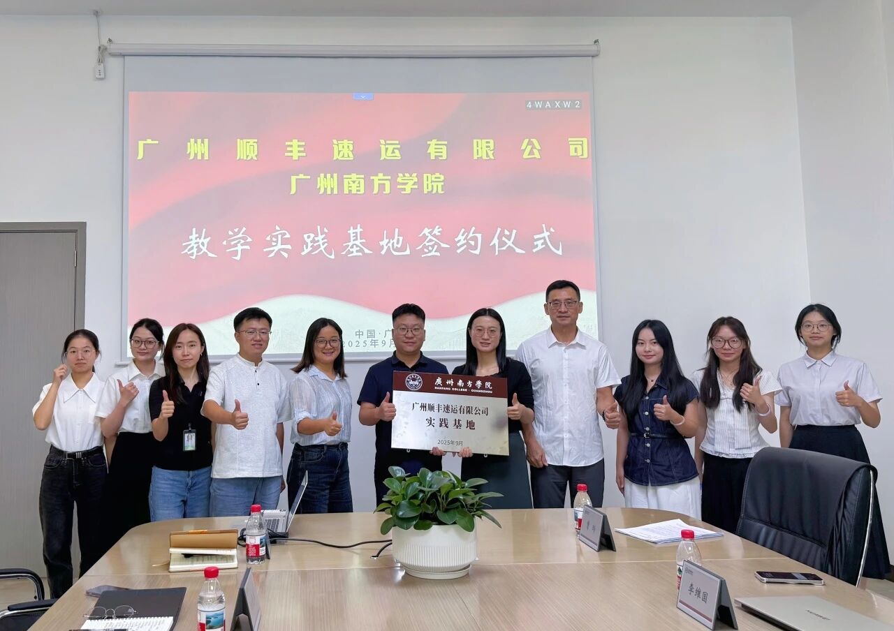 为深化产教融合,加强校企协同育人,为物流管理、电子商务等专业学生搭建高质素的实践平台,2025年9月26日上午,由南方创新谷主任李维国副教授、教务处陈潇老师、教学质量评建与督导办公室黄昊老师、物流管理专业主任蒋敏敏老师、物流管理专业教师曾玲老师以及2024级物流管理专业的4名学生代表组成的师生团队,赴广州顺丰速运有限公司开展校企交流活动,并成功举行“顺丰速运有限公司实践基地”挂牌仪式。顺丰华南区校企合作负责人张博伦、顺丰广佛区校园项目负责人刘夏洋女士和张惠萍女士等热情接待了交流团队。