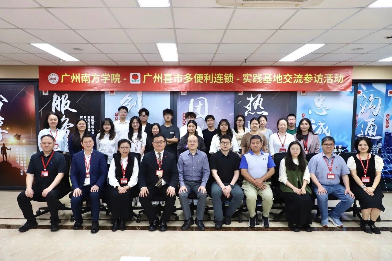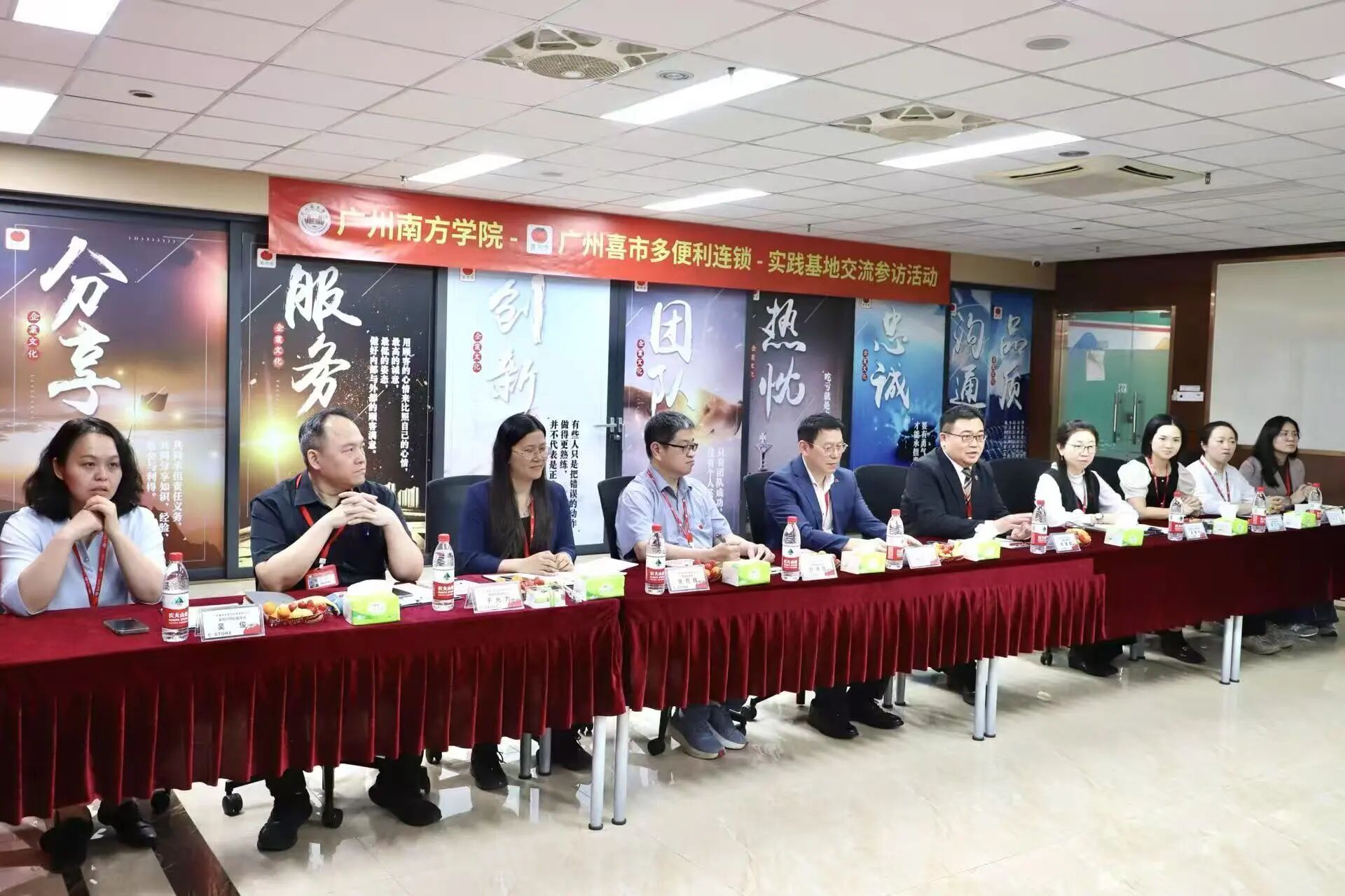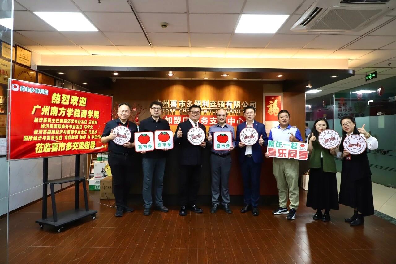 为深化产教融合,助力学生高质量就业创业,2025年3月27日,威廉官网中国与广州喜市多便利连锁有限公司联合举办实践基地校企交流活动。williamhill中文经济系系主任兼经济学专业主任王家兴副教授、国际经济与贸易专业主任马夏冰老师、国际商务专业主任马学文副教授、国际经济与贸易专业陈婷老师等带领我院16位同学前往参加交流活动,与喜市多企业方领导齐聚一堂,共话校企合作新路径。