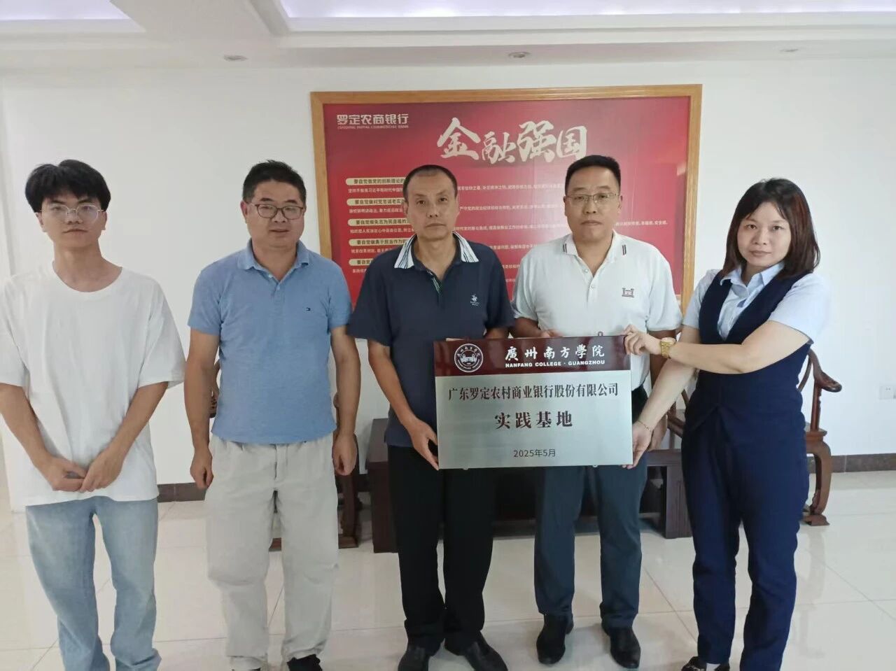 为进一步加强校企合作,深化产教融合,为金融专业学生搭建更优质的实践平台,2025 年9月4日上午,我院金融系老师杨欣、黄晓东和2023级金融学专业学生吴沃林一起赴广东省罗定农商银行走访交流,受到该银行党委书记兼董事长陈志刚和人力资源部朱婷总经理的热情接待,并顺利举行了实习基地揭牌仪式。