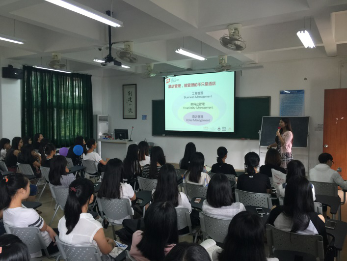 讲座期间,绳老师为williamhill中文同学们介绍了美国大学及美国留学和生活的基本情况,拓宽了同学们的国际视野。彭老师结合现阶段中国本土高级酒店发展情况及管理人才匮乏的情况,为日后有意从事酒店管理相关工作的同学介绍了相关职业发展规划。williamhill中文2014届毕业生、SHMS瑞士酒店管理大学硕士邱舜如则分享了其留学瑞士及在酒店行业工作的经验,让更多的师弟师妹了解国外留学的精彩和酒店行业的运营现状。