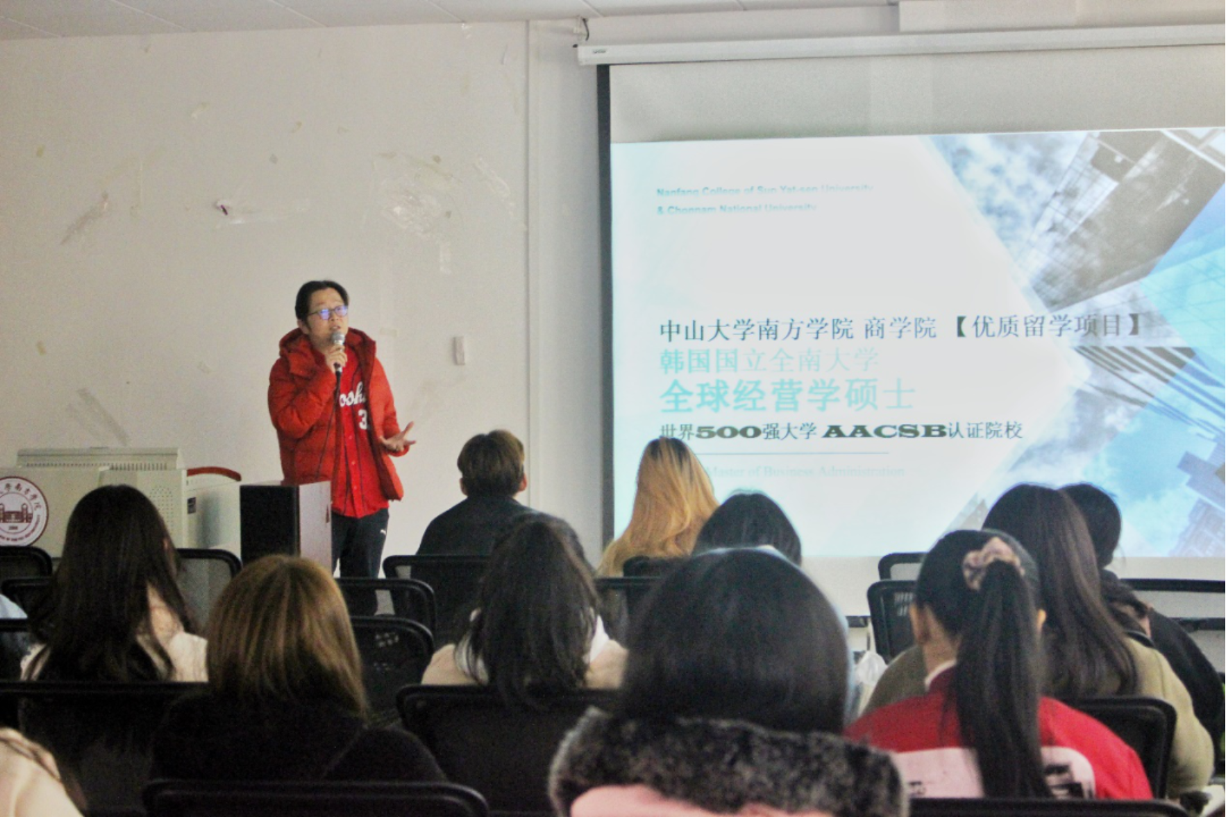 高斌斌老师通过韩剧和电影等方式带领参会同学了解韩国国立全南大学MBA项目,并且介绍了该校入学要求、相关课程、师资团队等资讯。随后,高老师分享了自身的经历,让同学们切身感受到在韩国留学的优势以及就业要求。