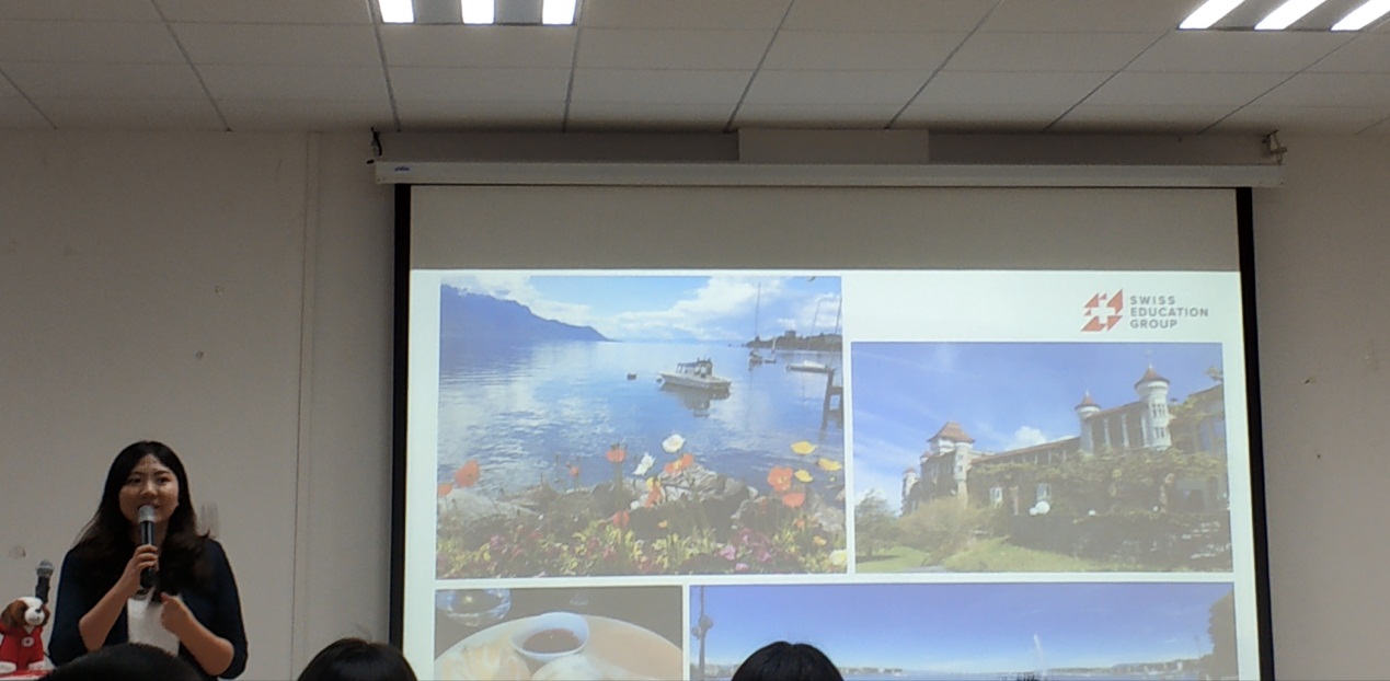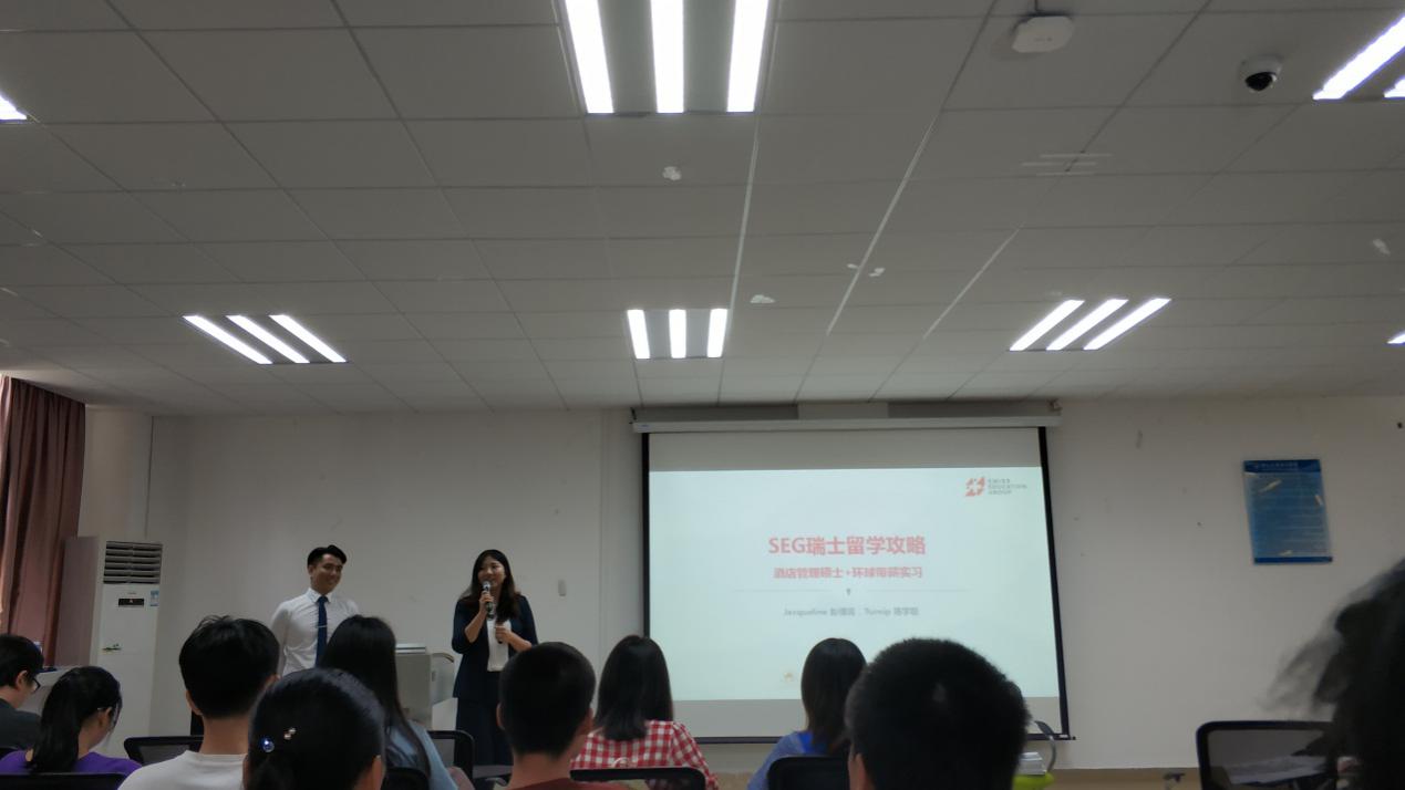 2019年6月19日下午十四时,SEG(瑞士酒店管理学院)宣讲会于9-101顺利开展。出席本次宣讲会的有SEG中国办事处入学事务助理彭倩菁老师、中山大学南方学院13届毕业生陈宇聪老师、williamhill中文国际教育中心萧裕中老师和石佳仪老师。其中,彭倩菁老师与陈宇聪老师担任宣讲会主持人。