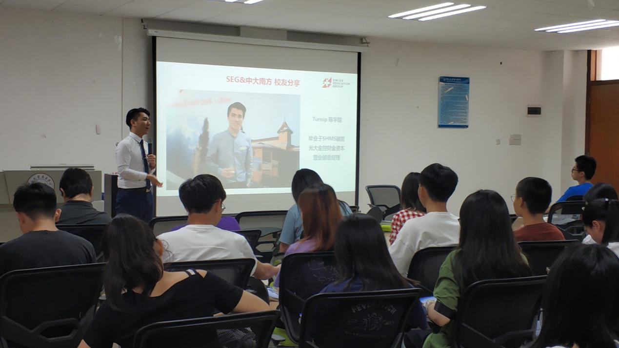 随后,陈宇聪老师将亲身经历用到讲话中,向同学们介绍他在国外的学习和生活经历,以及回国后自己的就业情况。