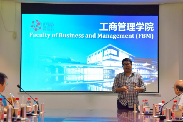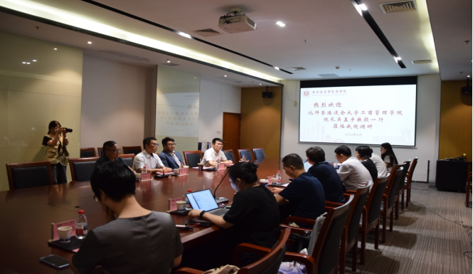 随后,吴盖宇院长介绍了北师香港浸会大学工商管理学院国际化办学特色,即:依托香港浸会大学学术体系,以全英文教学为核心,构建“国际师资+全球实践”培养模式。在交流中,他分享了商业分析、智能供应链等交叉学科的建设经验,并强调“商科教育需融合前沿技术与社会需求”。基于此,他提议两院共建“低空经济管理”课程体系,推动产学研用协同创新,共同探索未来的商科教育发展新的方向。