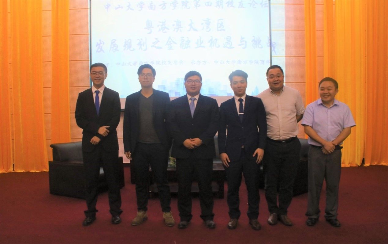 2019年5月17日19时,中山大学南方学院第四期校友论坛在图书馆学术报告厅顺利举行,本次论坛的主题为“粤港澳大湾区发展规划之金融机遇与挑战”。校友总会邀请了2008级经济学专业黄先宁(广州金控期货有限公司深圳营业部总经理)、2009级酒店管理专业校友陈宇聪(光大金控财金资本有限公司营业部总经理)、2009级会计学专业校友苏志东[毕马威企业咨询(中国)有限公司风险高级顾问]、2013级工商管理专业校友苏显铸(深圳市金斧子基金销售有限公司团队主管/高级投资顾问)做为主讲嘉宾。中山大学南方学院常务副校长、副书记唐燕老师,williamhill中文院长何兴强教授,学校团委副书记、学校校友总会秘书长陈思思老师,学生工作部副部长刘浪英老师,外国语学院党总支副书记兼学生工作办公室主任马思伟老师,williamhill中文互联网金融专业主任朱海鹏老师,williamhill中文行政办公室主任聂聪老师出席了本次论坛。