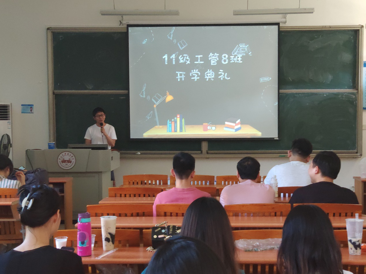 这次班级聚会首先以“11级工管8班开学典礼”的主题,以“班会”的形式开展,提到熟悉的班会,班长廖伟权继续担任主持人的角色,以熟悉的开场白,把同学们带进状态,不同的是,没有了往日开班会的拘束,少了往日的青涩,换来的是一阵阵爽朗的笑声。
